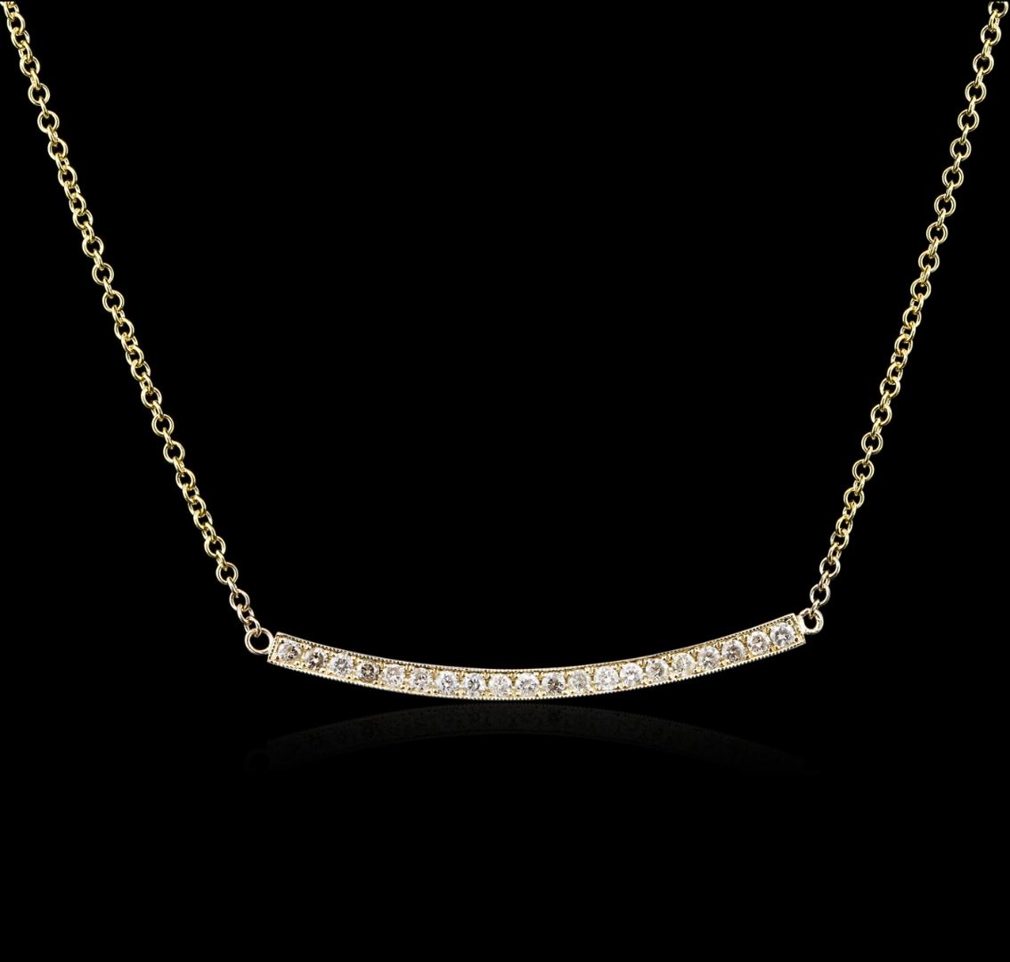 One necklace featuring: 14KT yellow gold weighing 4.80 grams containing pave set round cut diamonds with a total weight of 0.84cts.