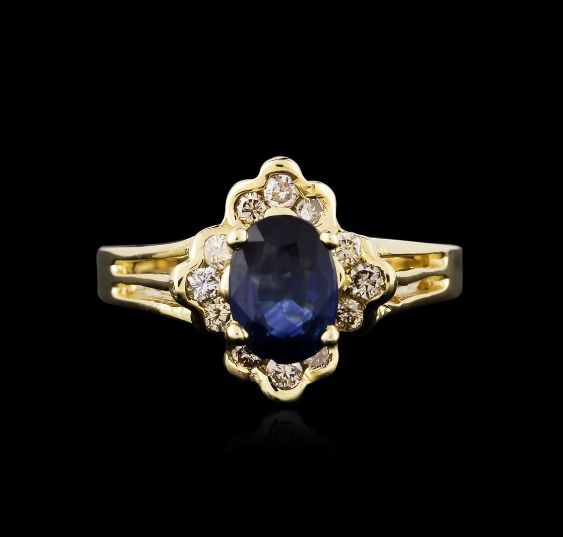 One ring featuring: 14KT yellow gold weighing 3.68 grams containing one blue sapphire center stone weighing 0.90ct and diamonds weighing a total of 0.30ct.