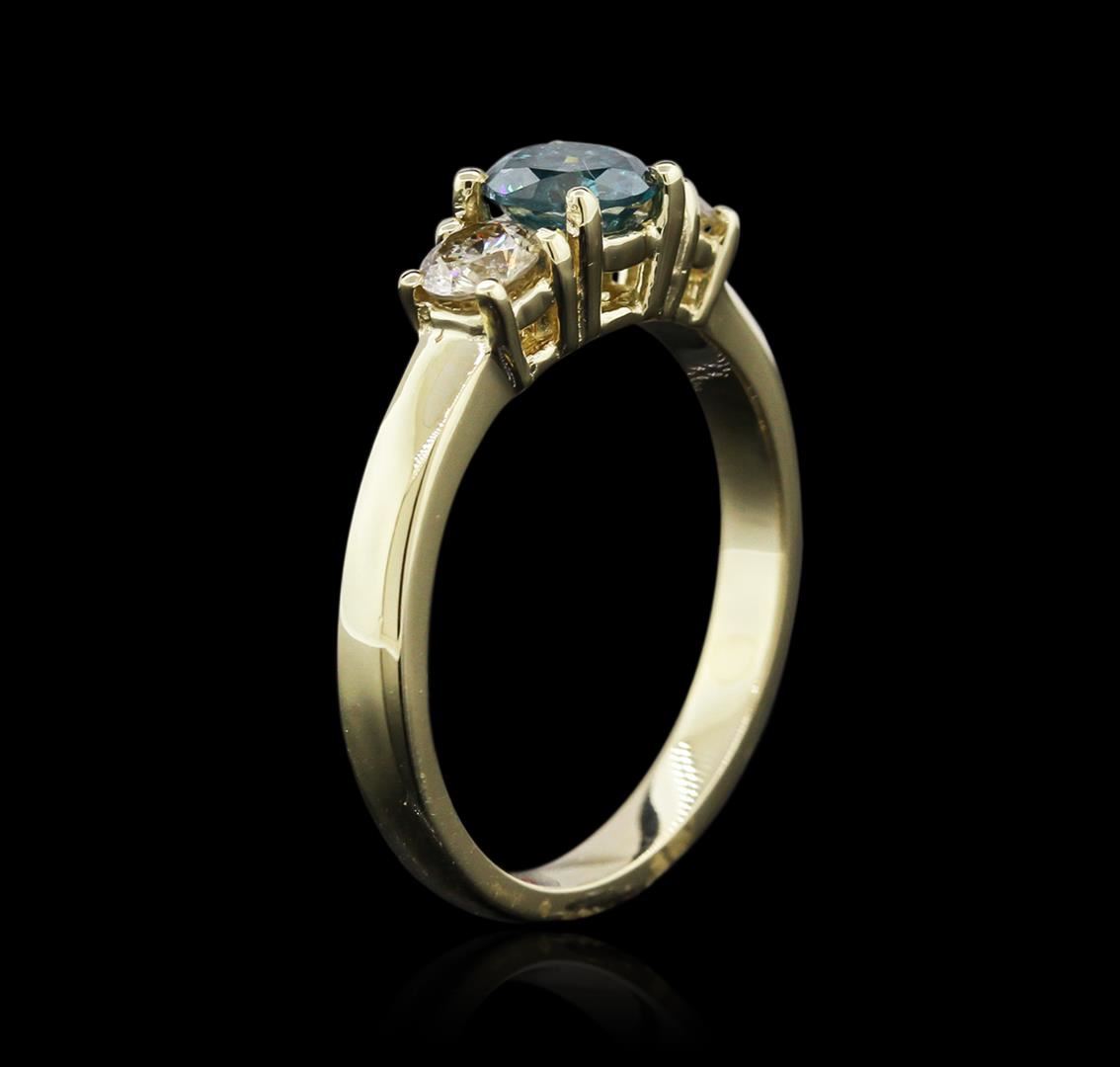 One ring featuring: 14KT yellow gold weighing 3.40 grams containing one blue diamond center stone with a total weight of 0.56ct and two side diamonds with a total weight of 0.40ct.