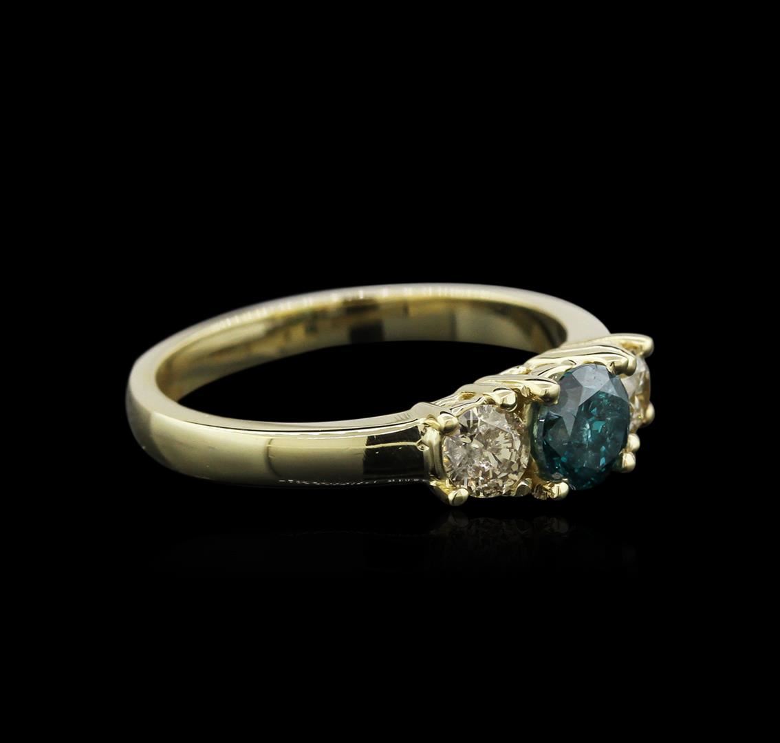One ring featuring: 14KT yellow gold weighing 3.40 grams containing one blue diamond center stone with a total weight of 0.56ct and two side diamonds with a total weight of 0.40ct.