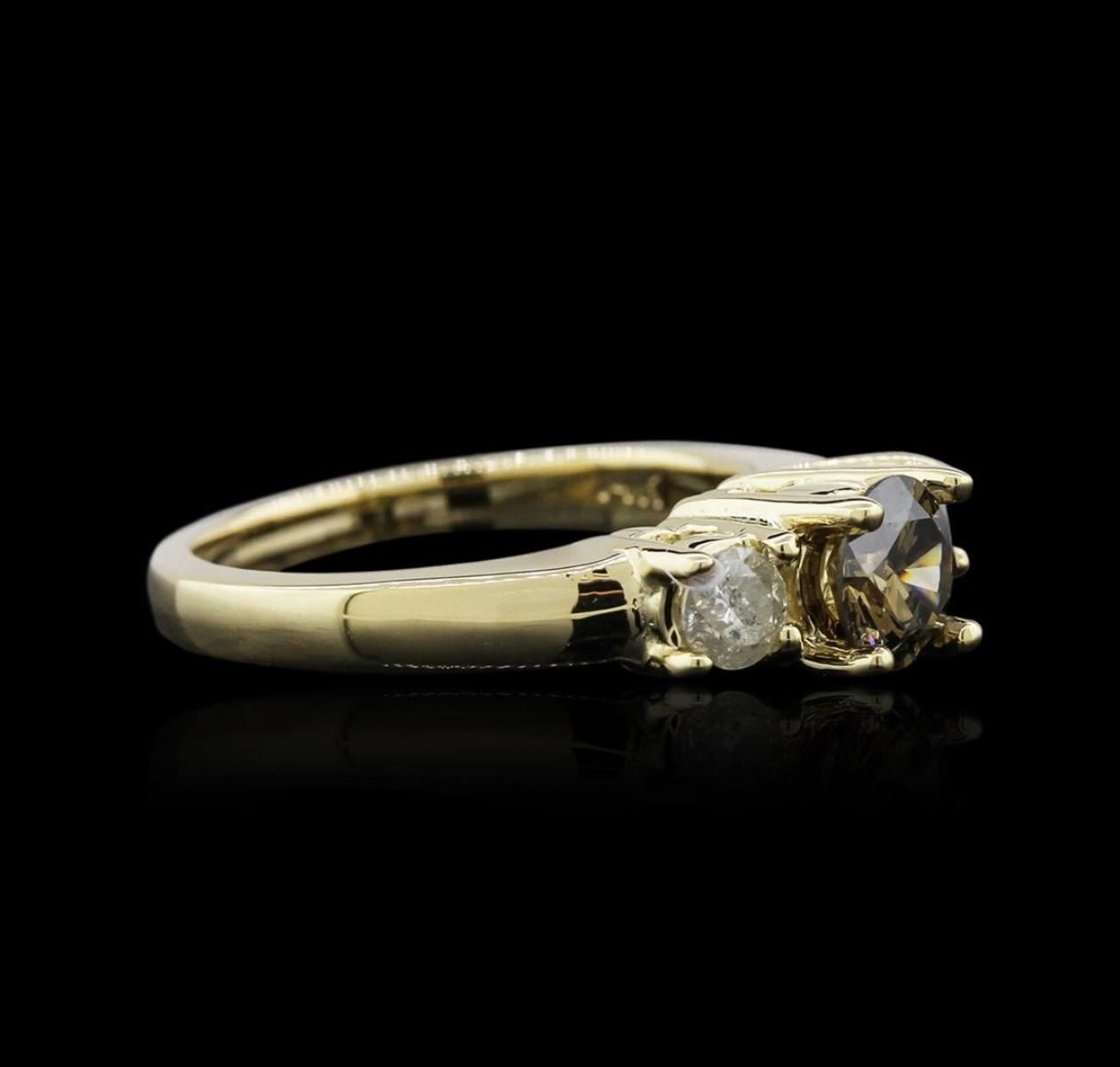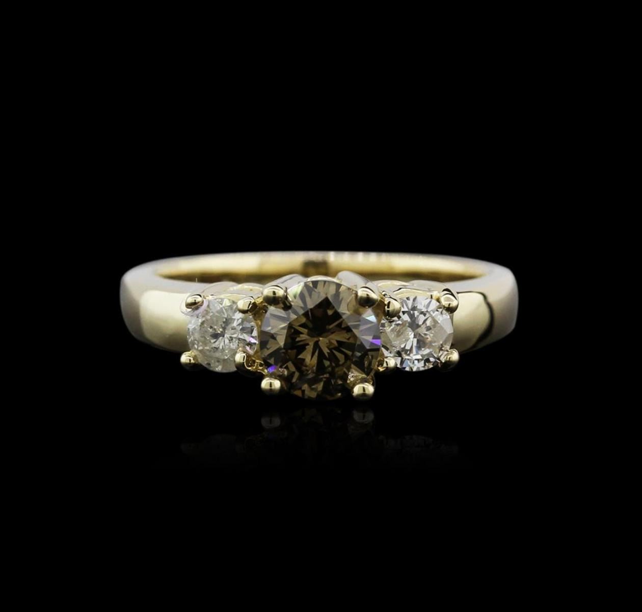 One ring featuring: 14KT yellow gold weighing 4.80 grams containing one brown diamond center stone with a total weight of 0.65ct and two side diamonds with a total weight of 0.33ct.