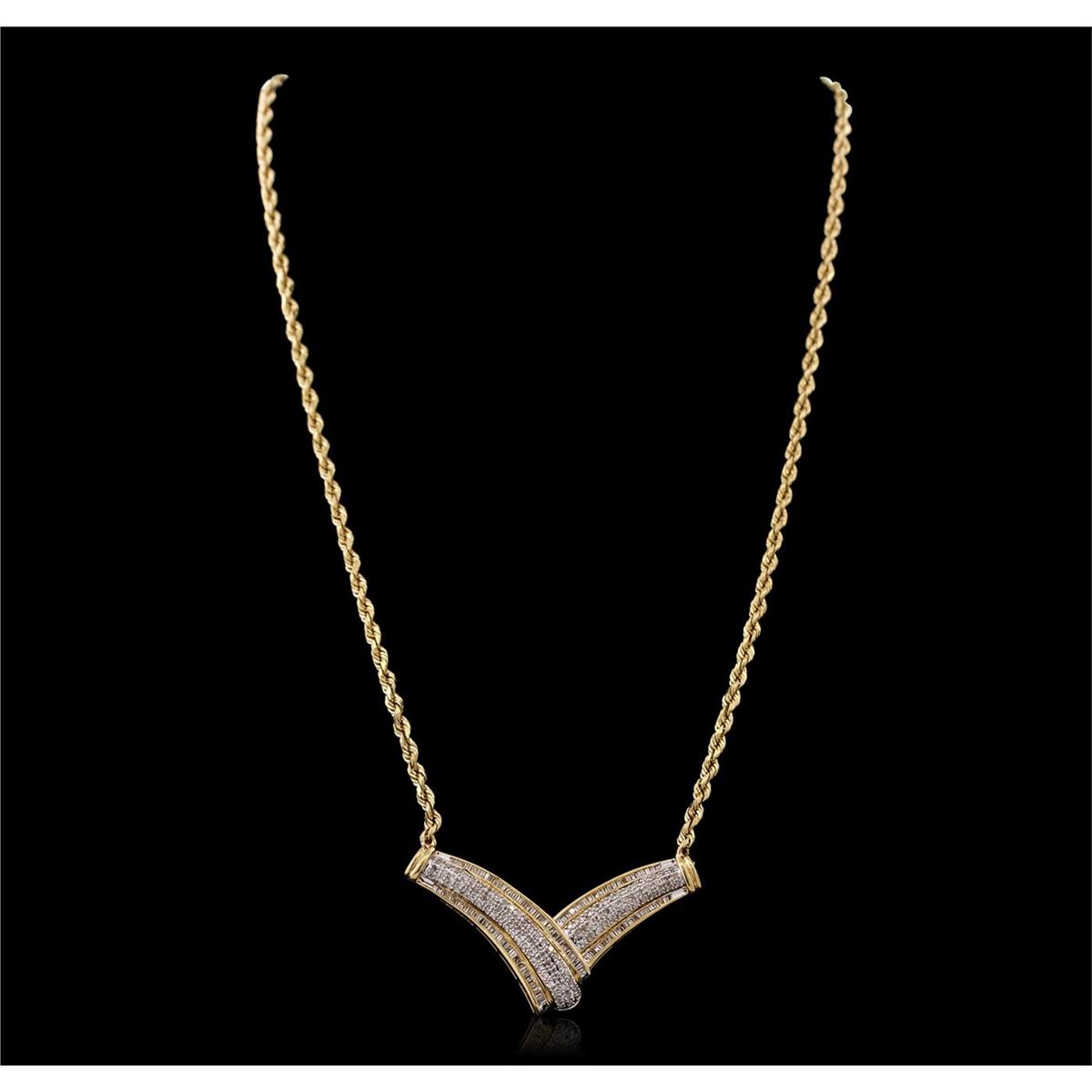 One necklace featuring: 14KT yellow gold weighing 16.10 grams containing round and baguette cut diamonds with a total weight of 1.00ct.