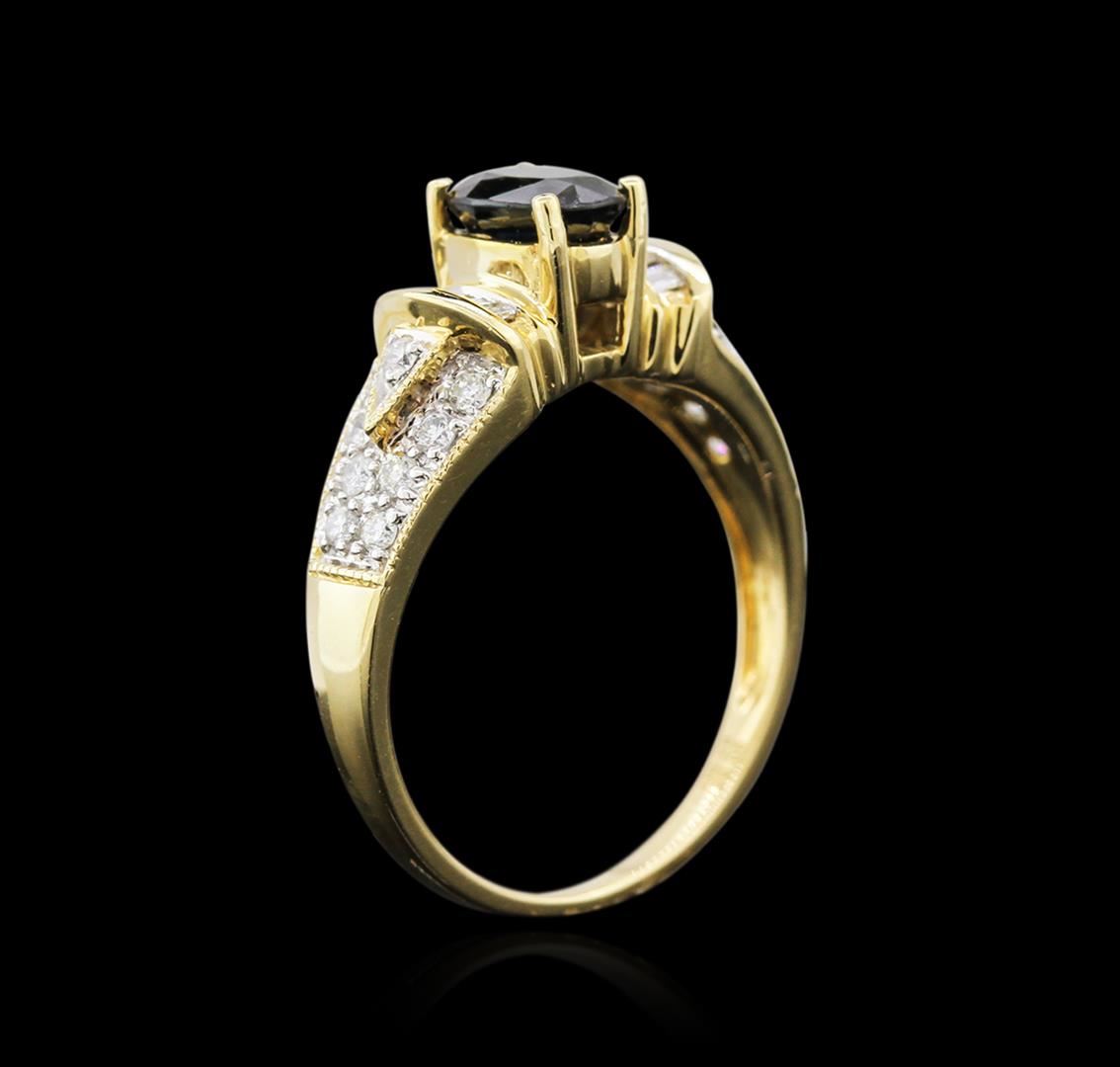 One ring featuring: 14KT yellow gold weighing 3.09 grams containing one sapphire center stone with a total weight of 1.02ct and 30 baguette and round diamonds with a total weight of 0.33ct.