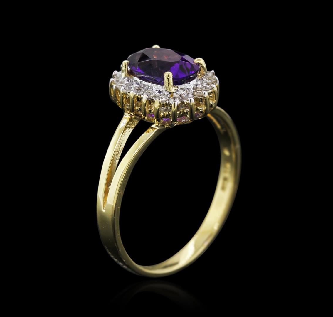 One ring featuring: 14KT yellow gold weighing 2.90 grams containing one amethyst center stone with a total weight of 1.09ct and 20 diamonds with a total weight of 0.14ct.