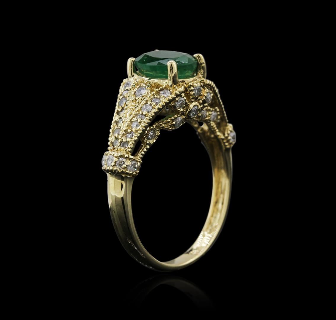 One ring featuring: 14KT yellow gold weighing 4.15 grams containing one emerald center stone with a total weight of 1.19ct and 56 diamonds with a total weight of 0.42ct.