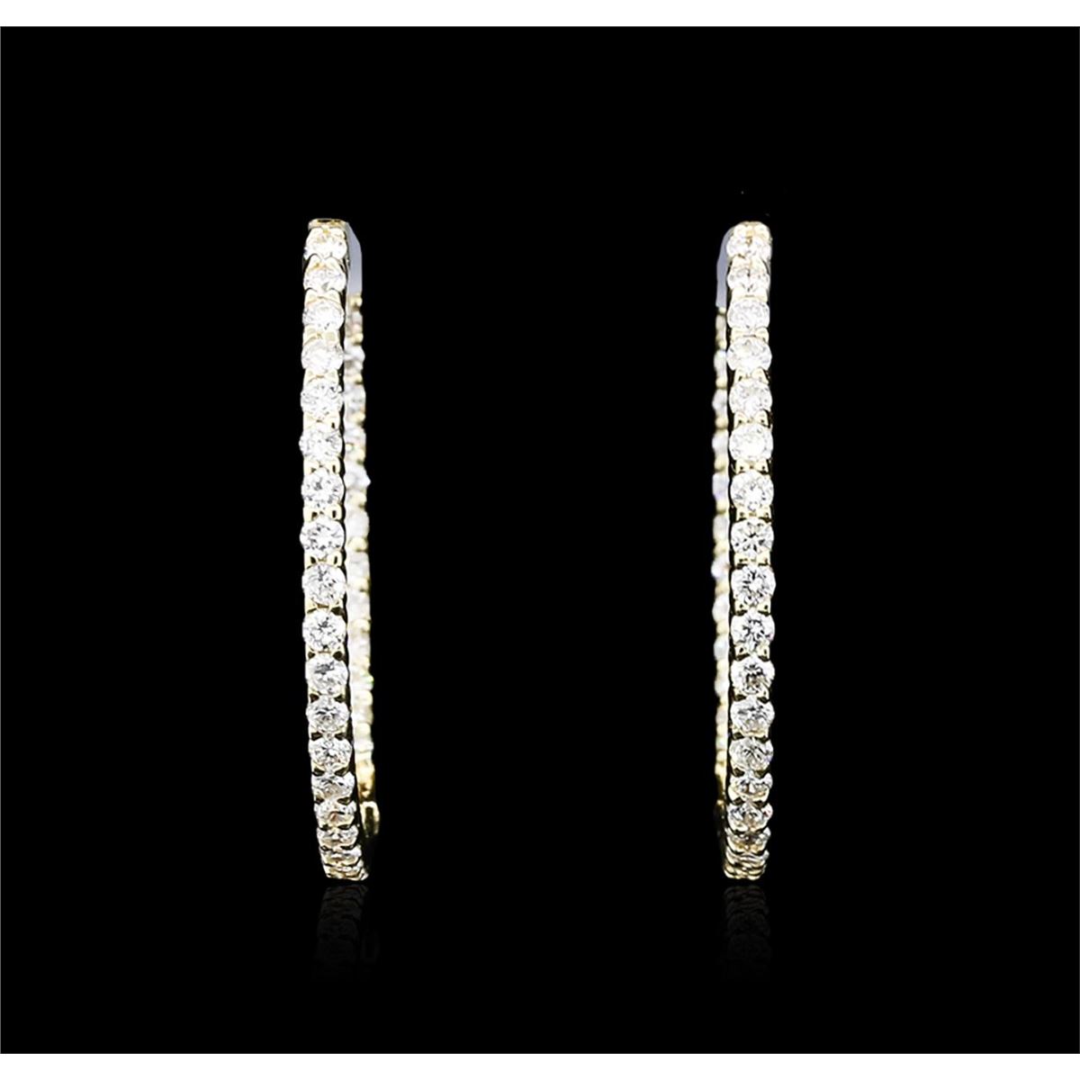 One pair of hoop earrings featuring: 14KT yellow gold weighing 6.30 grams containing round cut diamonds with a total weight of 1.50cts.