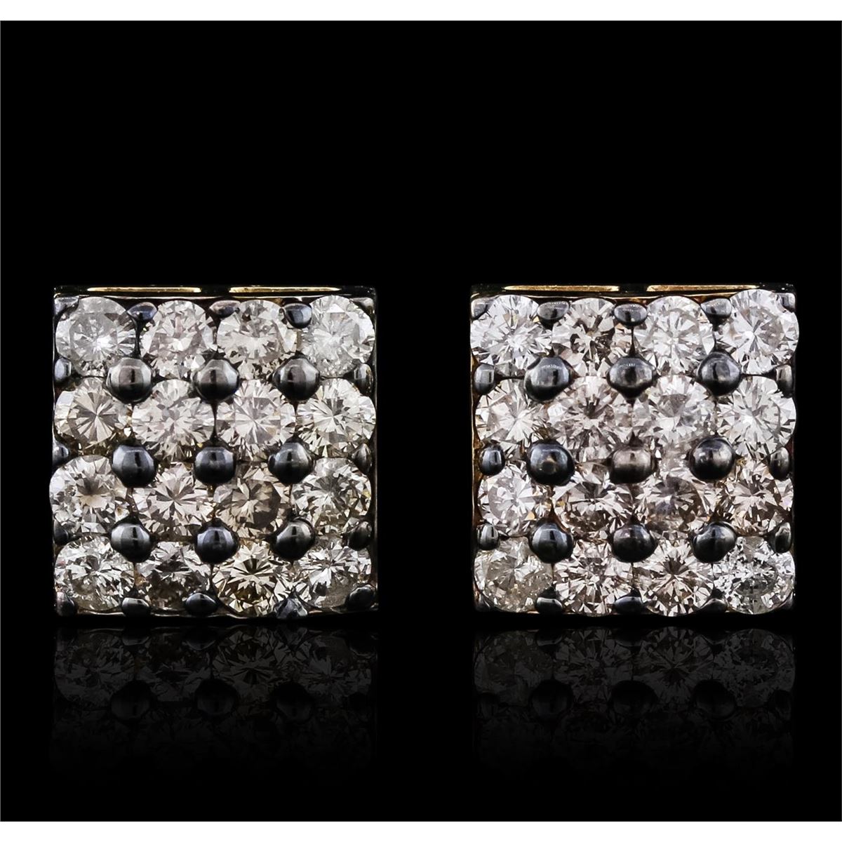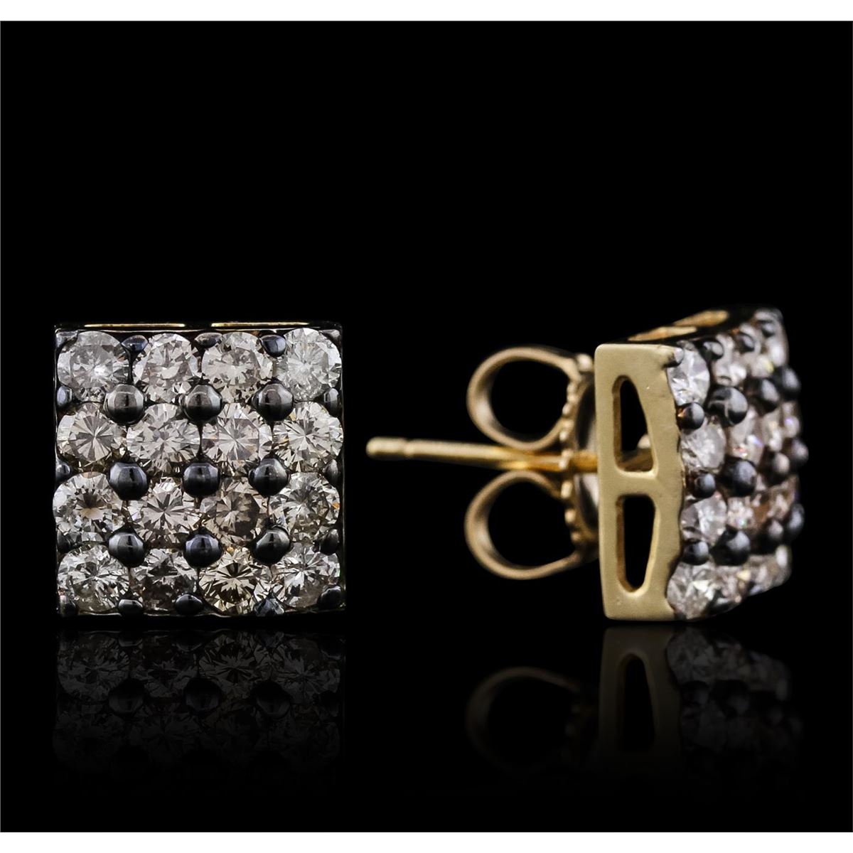 One pair of earrings featuring: 14KT Yellow Gold with a total weight of 3.00 grams, Diamonds with a total weight of 1.57ctw, and (32) rhodium.