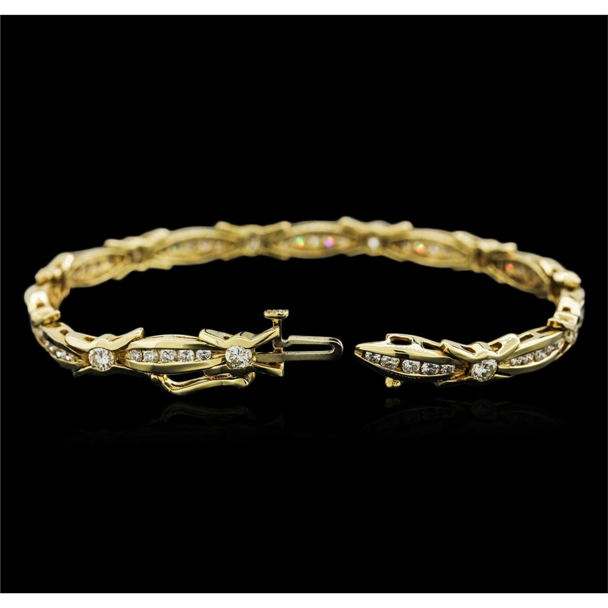 One bracelet featuring: 14KT yellow gold weighing 14.70 grams containing channel set round diamonds with a total weight of 1.63ct.