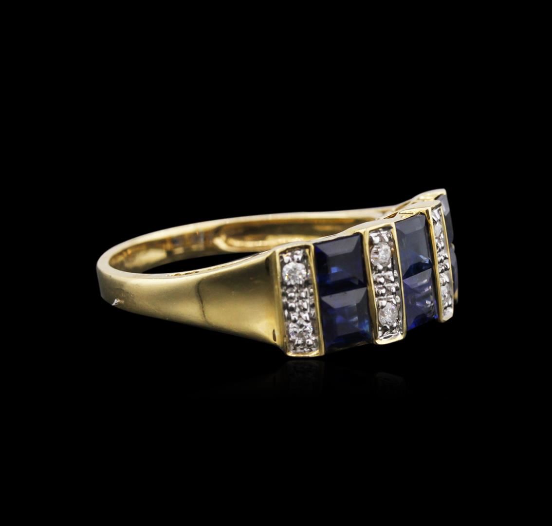 One ring featuring: 14KT yellow gold weighing 2.56 grams containing six blue sapphires with a total weight of 1.67ct and eight round diamonds with a total weight of 0.12ct.