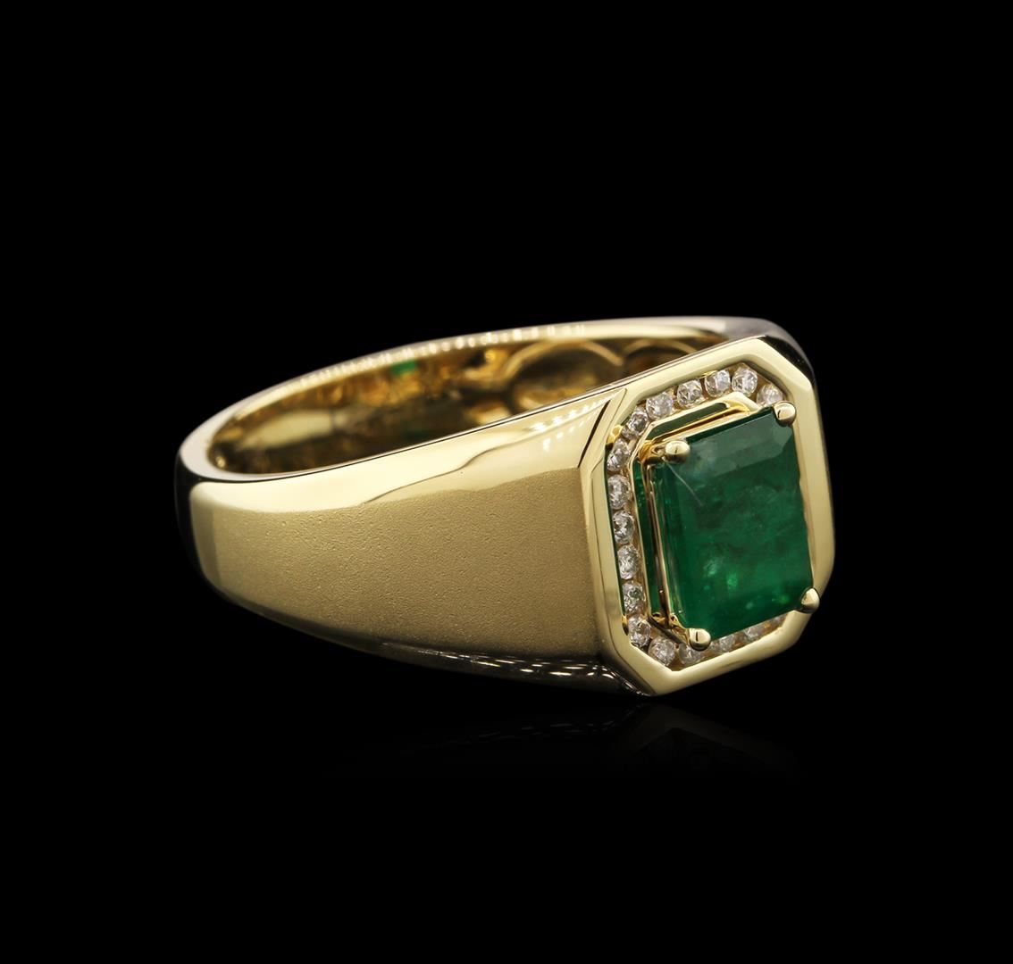 One ring featuring: 14KT yellow gold weighing 7.76 grams containing one emerald center stone with a total weight of 1.69ct and 22 round diamonds with a total weight of 0.21ct.