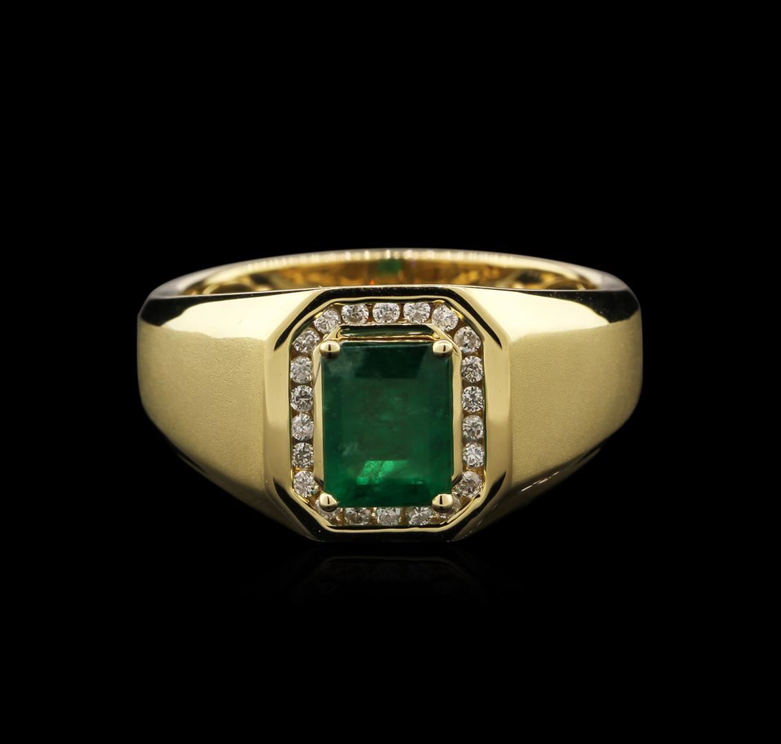 One ring featuring: 14KT yellow gold weighing 7.76 grams containing one emerald center stone with a total weight of 1.69ct and 22 round diamonds with a total weight of 0.21ct.