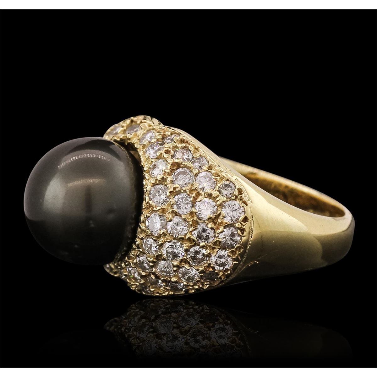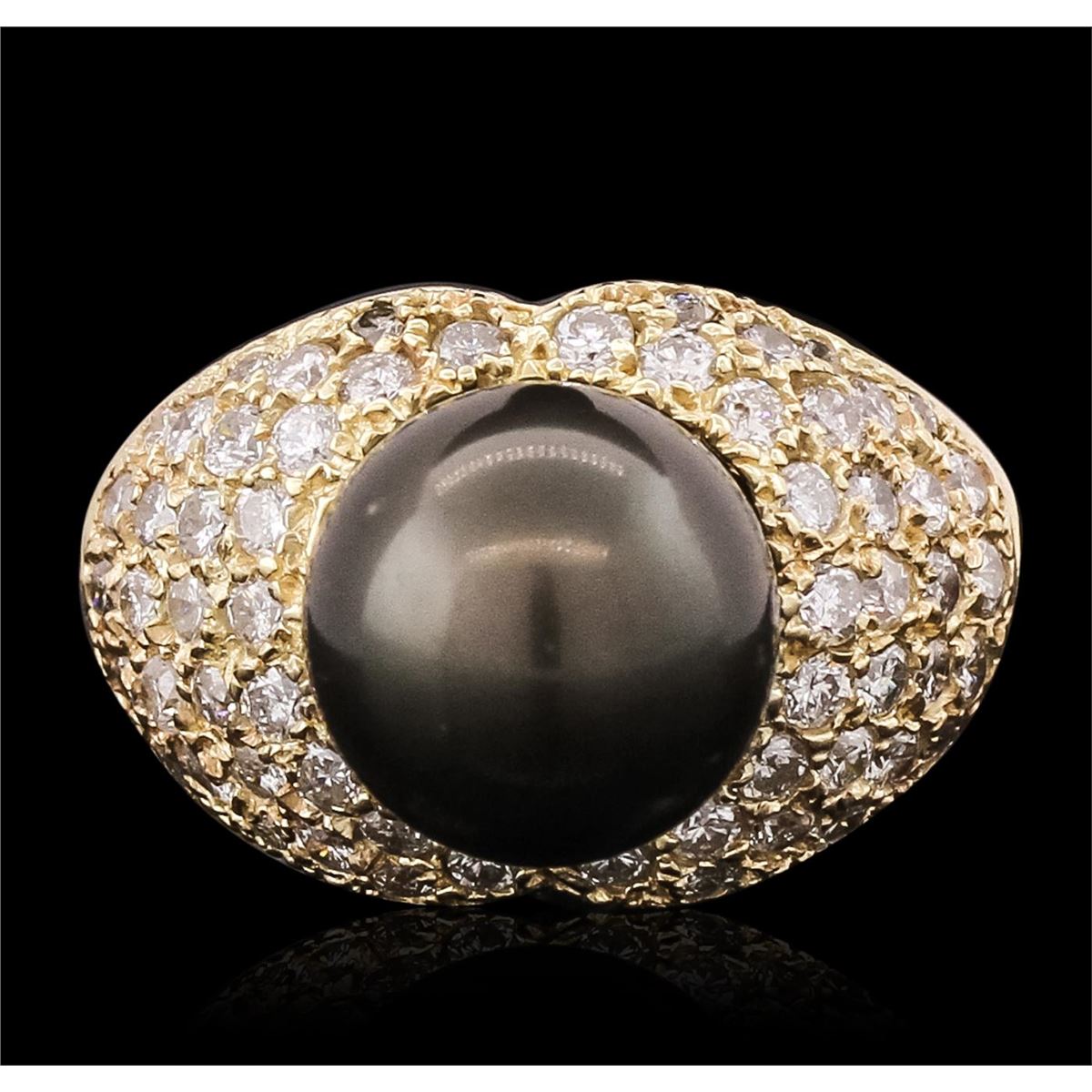 One ring featuring: 14KT yellow gold weighing 10.92 grams containing one black pearl measuring 10.75mm and round cut diamonds with a total weight of 1.70cts.