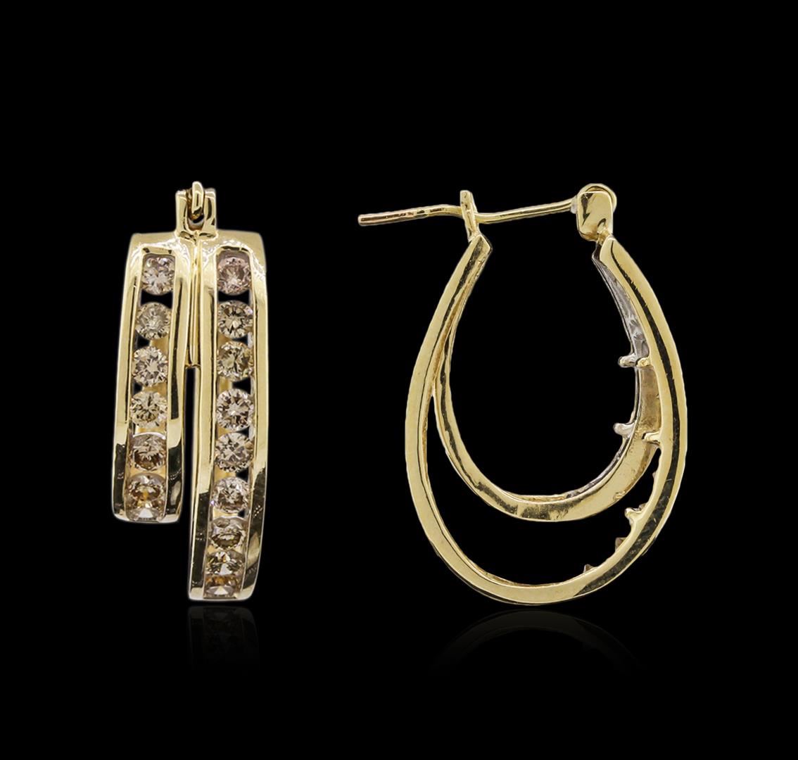 One pair electronically tested 14KT yellow gold ladies cast diamond earrings with hinged clip backs with a bright polish finish. Condition is very good. Containing: Thirty-Two channel set round brilliant cut diamonds, measuring 2.50 - 2.50 x 1.50mm (depth est.) approximate total weight of 32 Stones = 1.83ct. Clarity: SI-2 to I-1. Color: K - L, Cut is Good. All diamonds are graded in the mounting, unless otherwise stated. Total Weight of Diamonds 1.83ct. Total Weight of Earrings 7.70 grams. GGL Appraised at $2,695.00.