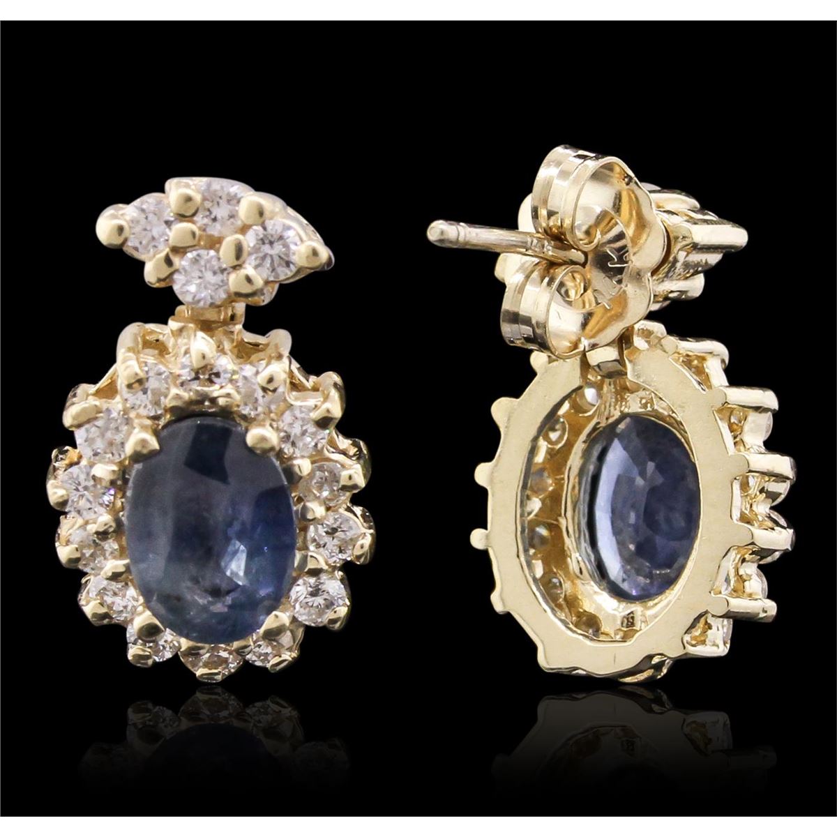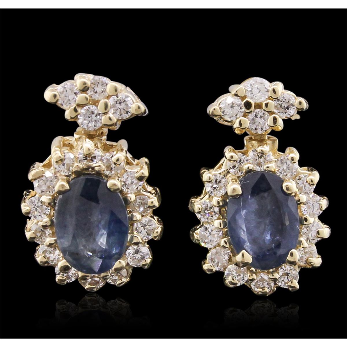 One pair of earrings featuring: 14KT Yellow Gold with a total weight of 4.35 grams, Sapphire with a total weight of 1.91ctw, and Diamonds with a total weight of 0.67ctw.