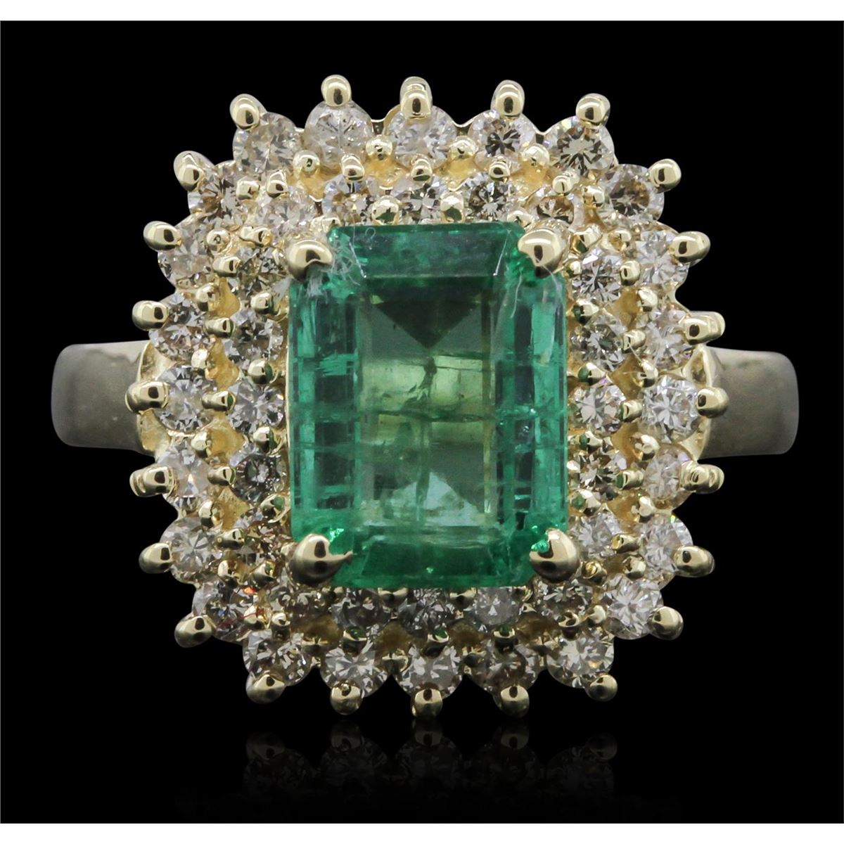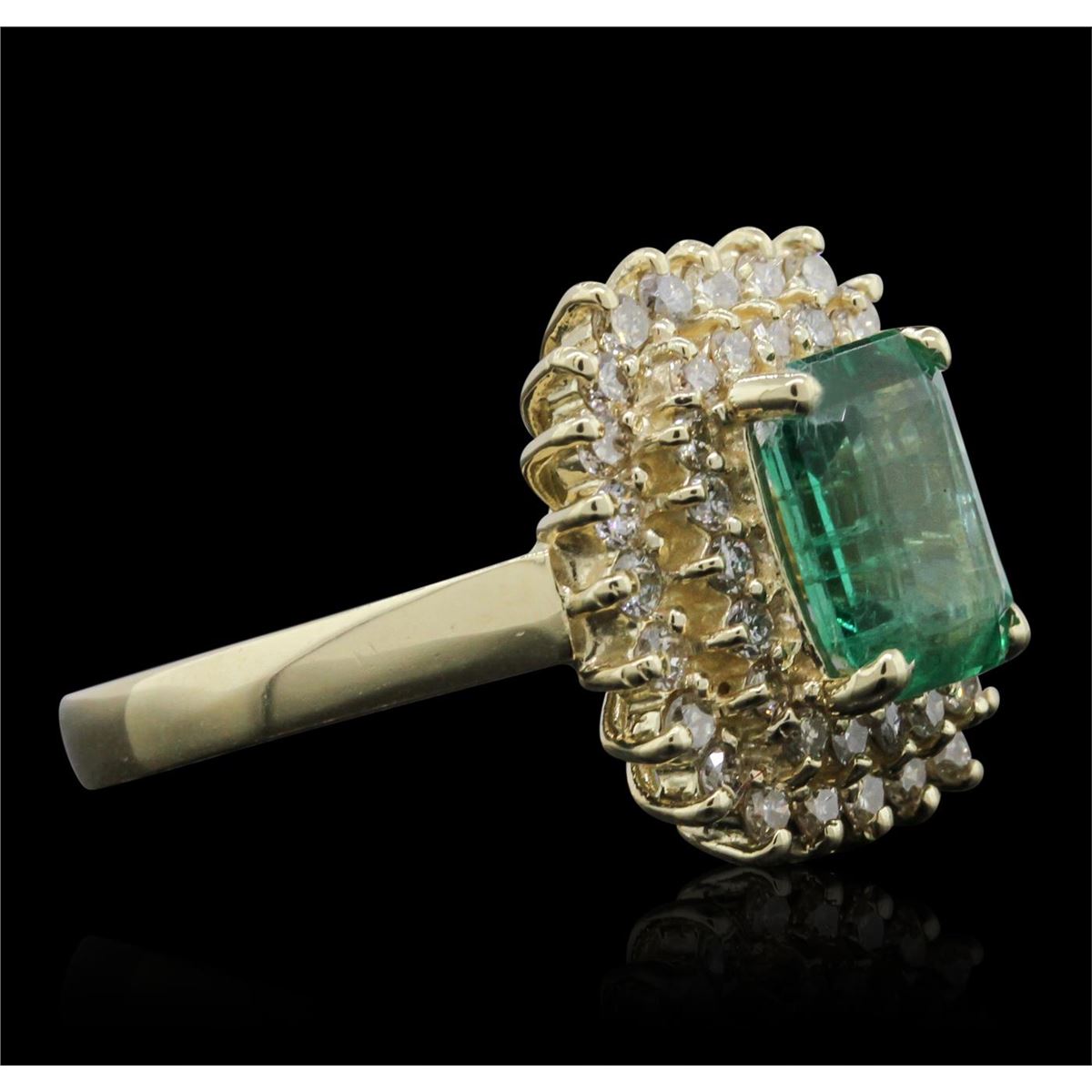 Great Condition! One electronically tested 14KT yellow gold Ladies combination cast & assembled fashion ring with a bright polish finish. Condition is new. Identified with markings of "14K". Containing: One prong set emerald standard step cut natural emerald, measuring 9.10 x 7.00 x 4.20mm, approximate weight of 1.96ct., clarity is moderately included, type III, medium, moderately strong, very slightly bluish green color, (GIA vslbG 5/4), cut is good. Colored gemstones are presumed to have been subjected to commonly used and possible undetectable color/clarity enhancement processes. Forty-Four bead set round brilliant cut diamonds, measuring 1.60 - 1.60 x 0.96mm (depth est.) approximate total weight of 44 Stones = 0.66ct. Clarity of SI-2 to I-1, Color of J - K, Cut is Good. Total Weight of Colored Stones 1.96ct. Total Weight of Diamonds 0.66ct. Total Weight of Ring 7.50 grams. GGL Appraised at $7,935.00.