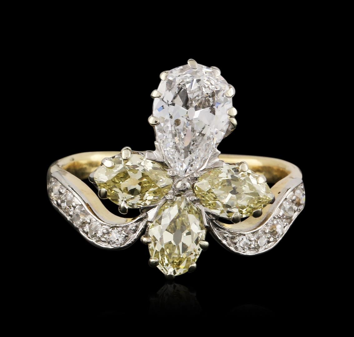 One electronically tested 14KT yellow gold ladies cast diamond ring with a bright polish finish. Condition is very good. Containing: One prong set pear shaped cut diamond, measuring 8.00. x 5.70 x 2.90mm (depth est.) approximate weight of 0.79ct. Clarity: SI-1. Color: H, Cut is Good. Three prong set marquise shaped cut diamonds, measuring 6.00. x 4.00. x 2.52mm (depth est.) approximate total weight of 3 Stones = 1.03ct. Clarity: SI-1, Cut is Good. Ten prong set Old European cut diamonds, measuring 2.00. - 1.30 x 1.02mm (depth est.) approximate total weight of 10 Stones = 0.17ct. Clarity: SI-2. Color: H - I. All diamonds are graded in the mounting, unless otherwise stated. Total Weight of Diamonds 1.99ct. Total Weight of Ring 5.00. grams. GGL Appraised at $11,490.00.