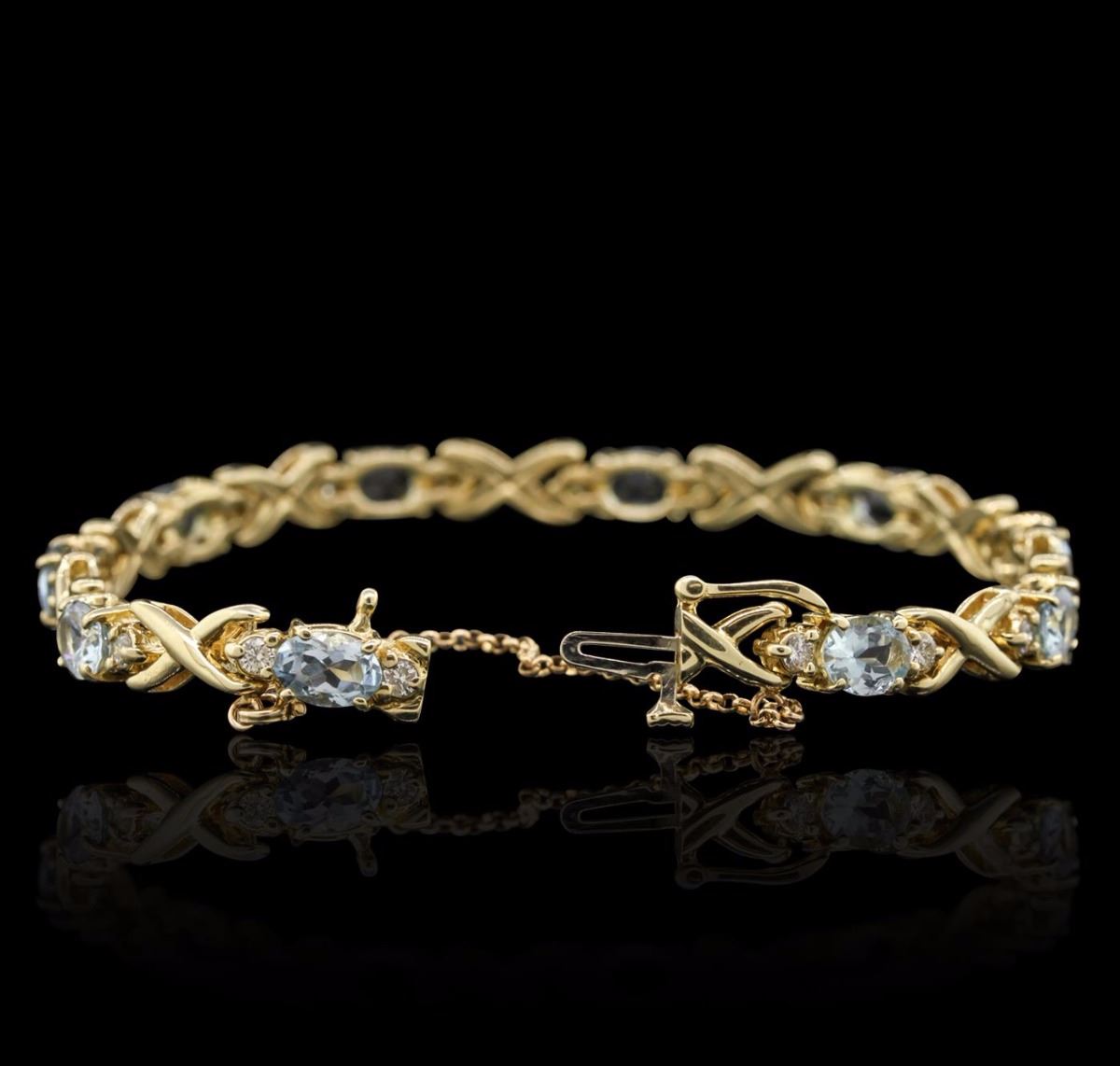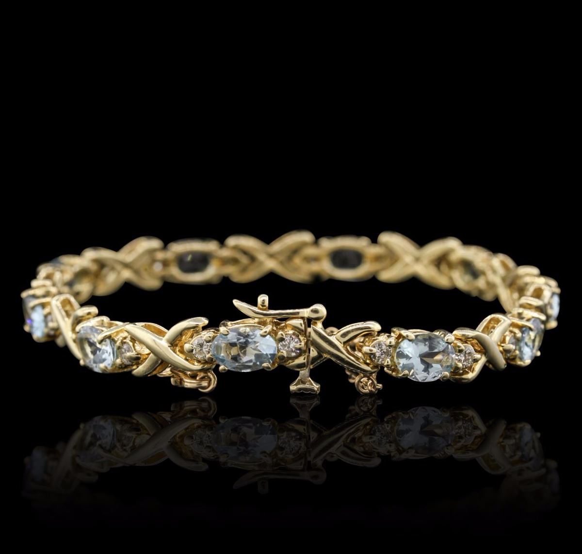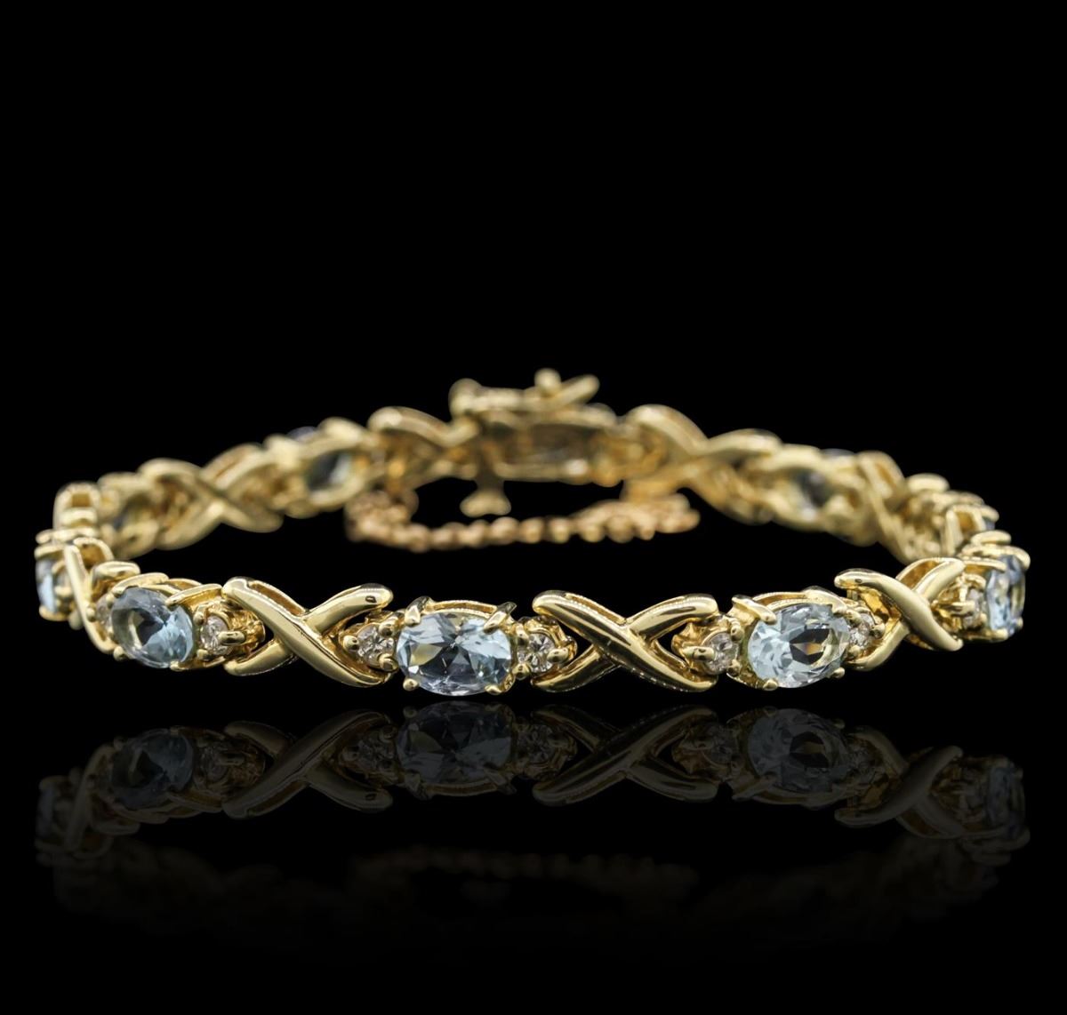 One Bracelet featuring: 14KT Yellow Gold with a total weight of 19.80 grams, Aquamarine with a total weight of 10.00ct, and Diamonds with a total weight of 0.50ctw.