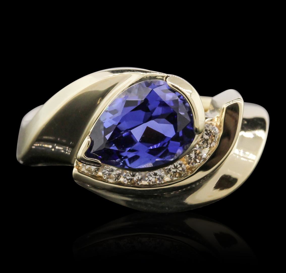 One ring featuring: 14KT Yellow Gold with a total weight of 7.10 grams, Tanzanite with a total weight of 2.00ct, and diamonds with a total weight of 0.20ctw.