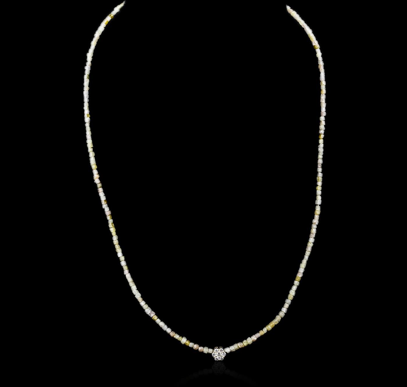 One necklace featuring: 14KT yellow gold weighing 5.20 grams containing rough diamonds with a total weight of 21.46cts and one prong set round cut diamond cluster with a total weight of 0.16cts.