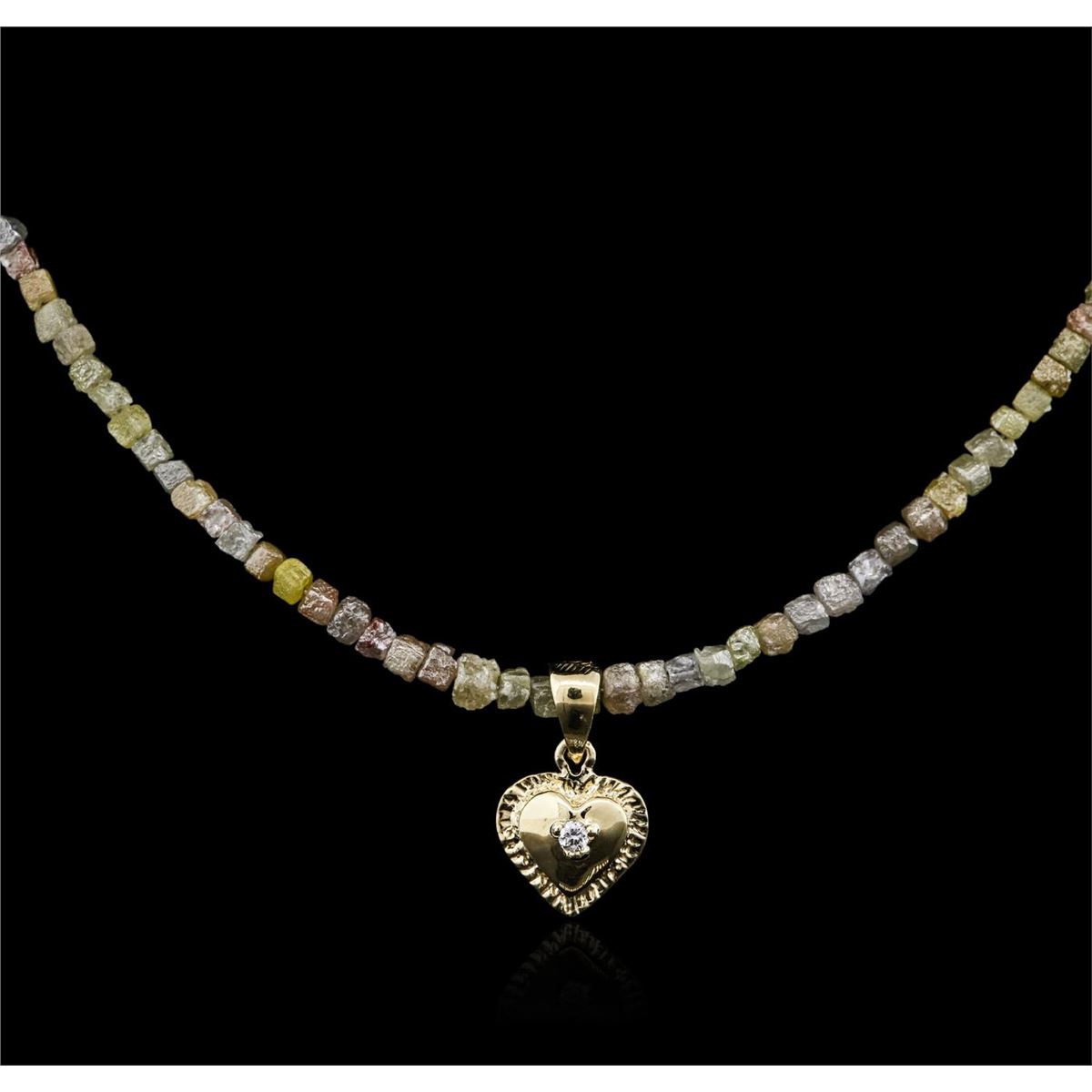 One necklace featuring: 14KT yellow gold weighing 5.80 grams containing rough diamonds with a total weight of 21.73cts and a heart shaped charm containing a prong set round cut diamond with a total weight of 0.03ct.