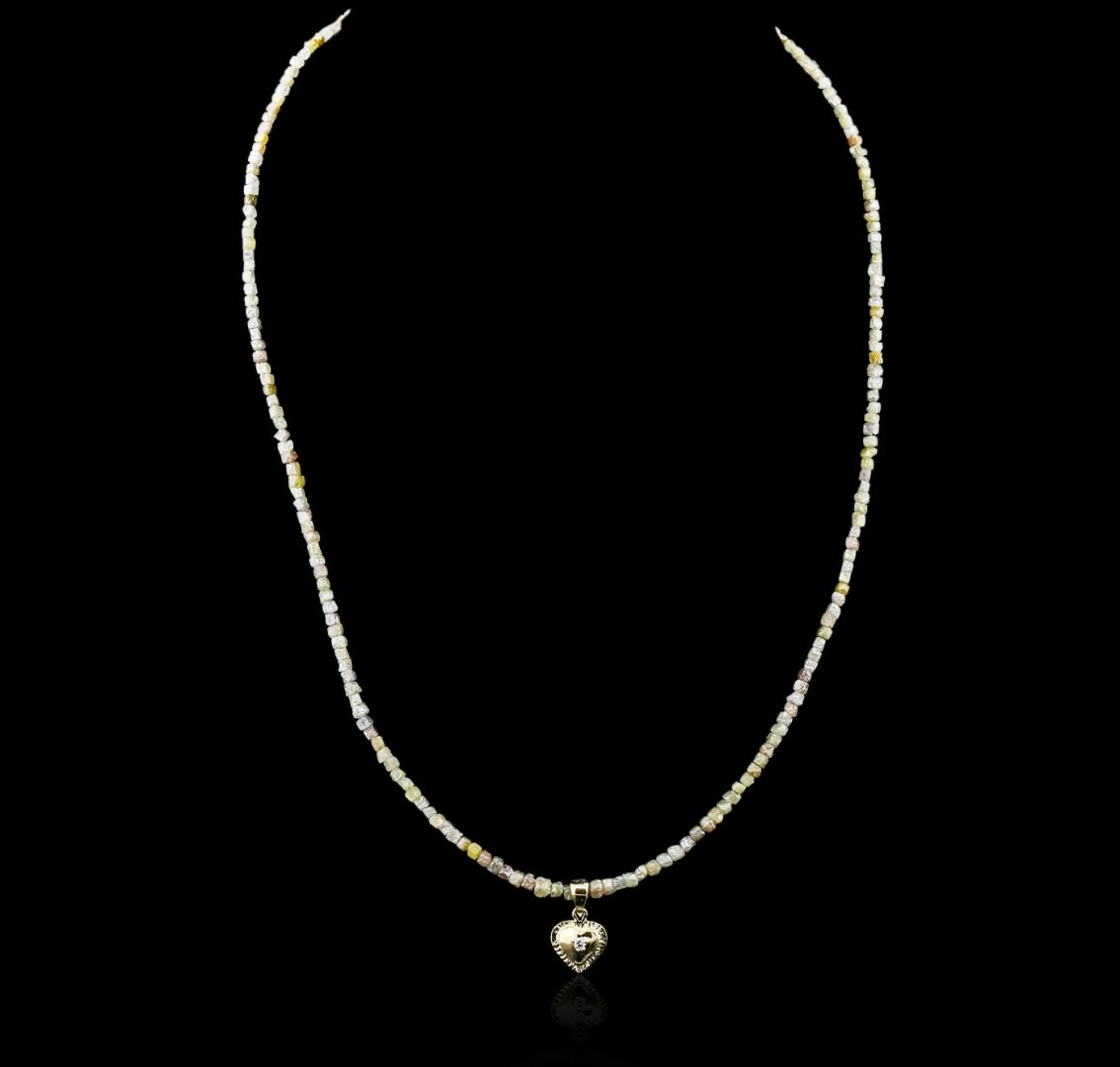 One necklace featuring: 14KT yellow gold weighing 5.80 grams containing rough diamonds with a total weight of 21.73cts and a heart shaped charm containing a prong set round cut diamond with a total weight of 0.03ct.