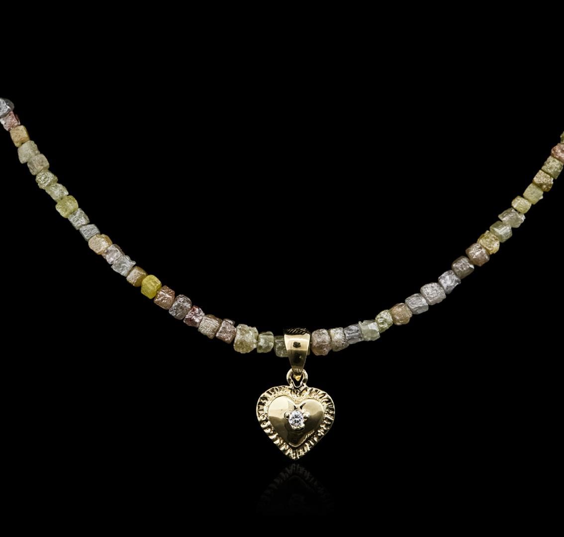 One necklace featuring: 14KT yellow gold weighing 5.80 grams containing rough diamonds with a total weight of 21.73cts and a heart shaped charm containing a prong set round cut diamond with a total weight of 0.03ct.