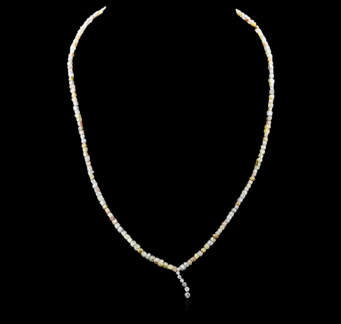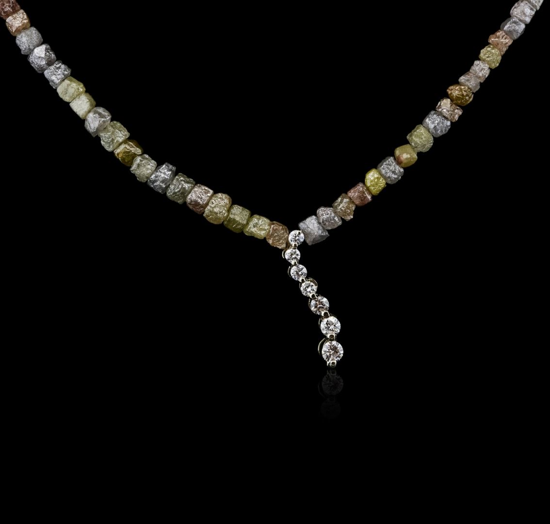 One necklace featuring: 14KT yellow gold weighing 7.60 grams containing rough diamonds with a total weight of 32.90cts and a journey charm containing seven prong set diamonds with a total weight of 0.25cts.