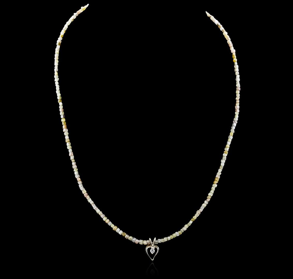 One necklace featuring: 14KT yellow gold weighing 5.60 grams containing rough diamonds with a total weight of 32.99cts and a heart shaped charm containing one prong set round cut diamond with a total weight of 0.04cts.