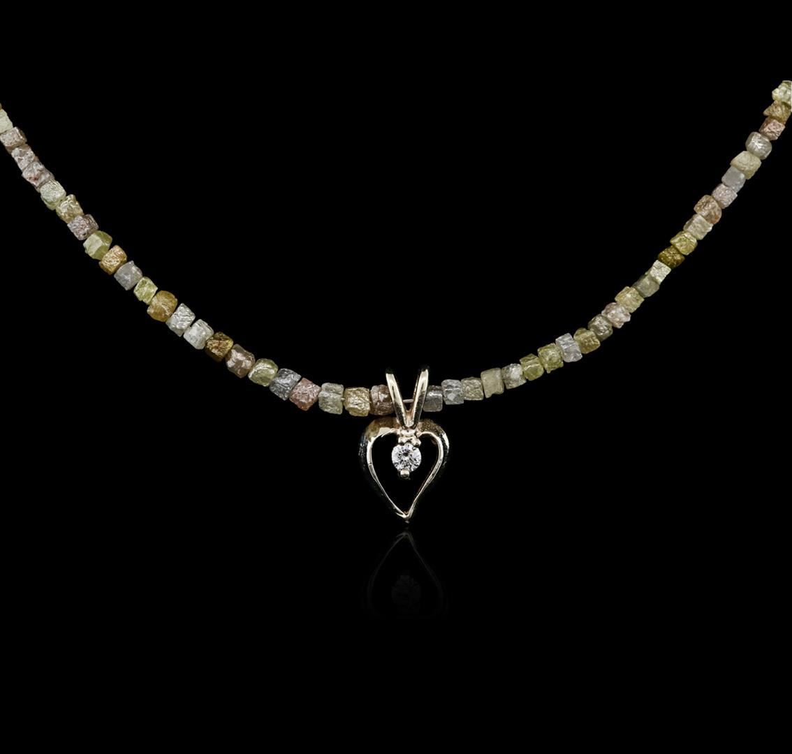 One necklace featuring: 14KT yellow gold weighing 5.60 grams containing rough diamonds with a total weight of 32.99cts and a heart shaped charm containing one prong set round cut diamond with a total weight of 0.04cts.