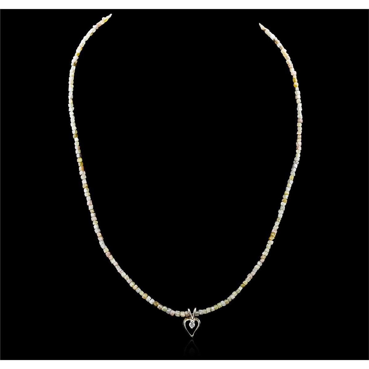 One necklace featuring: 14KT yellow gold weighing 5.60 grams containing rough diamonds with a total weight of 32.99cts and a heart shaped charm containing one prong set round cut diamond with a total weight of 0.04cts.
