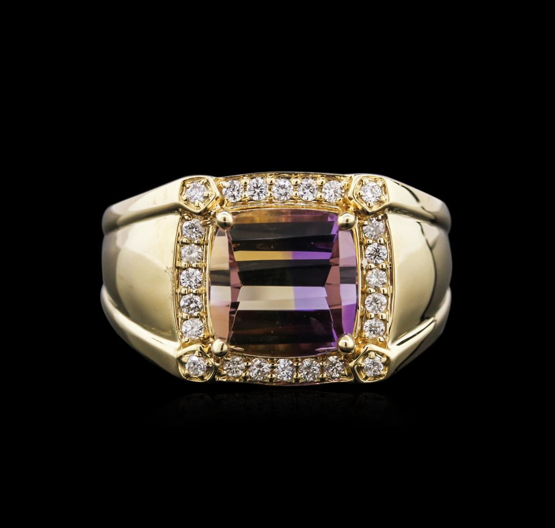 One ring featuring: 14KT yellow gold weighing 9.87 grams containing one ametrine center stone with a total weight of 4.51ct and 24 round diamonds with a total weight of 0.32ct.
