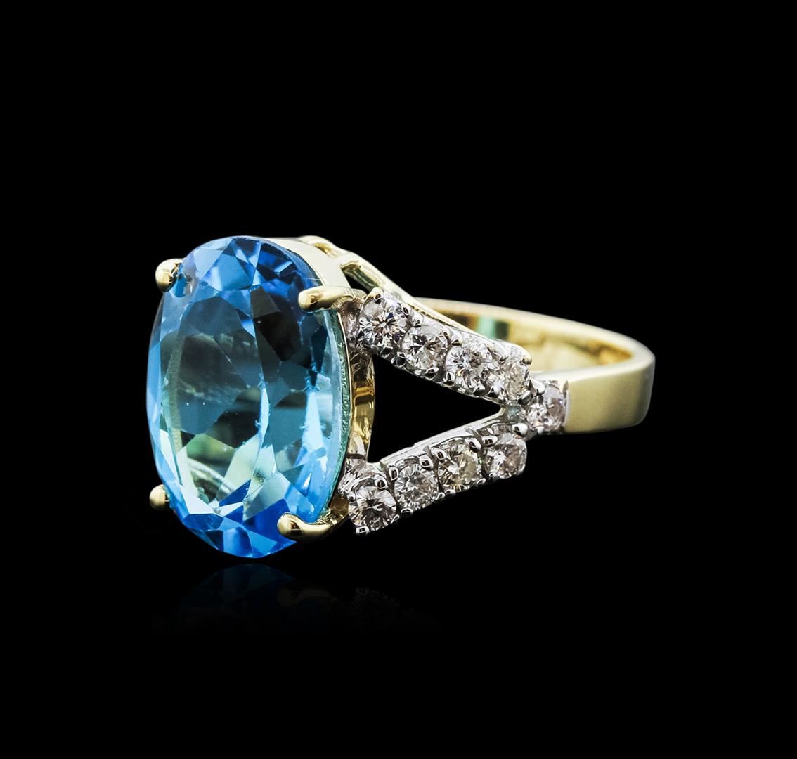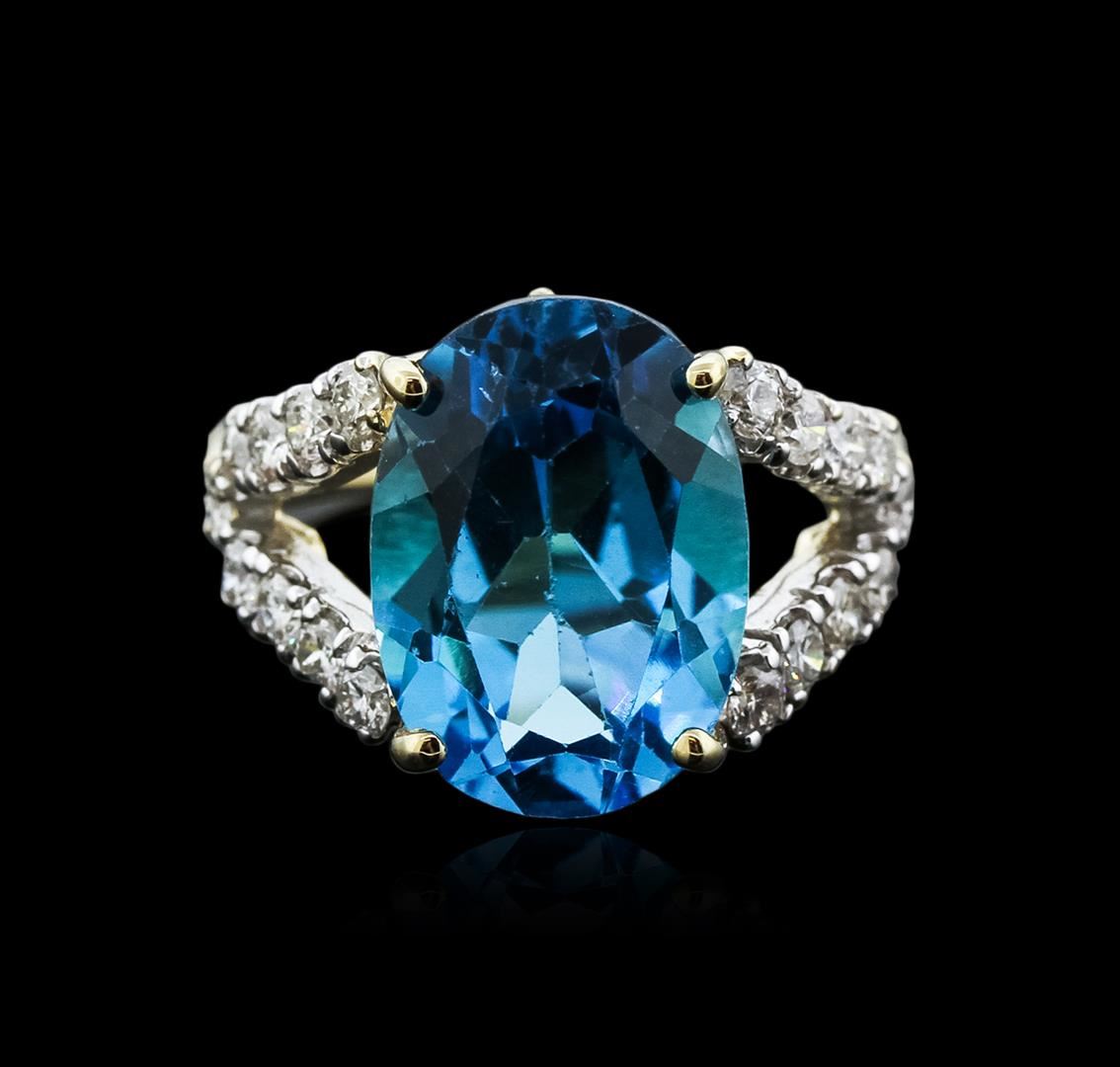 One ring featuring: 14KT yellow gold weighing 5.90 grams containing one blue topaz center and diamonds weighing a total of 0.50ct.