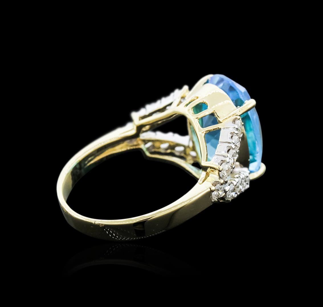 One ring featuring: 14KT yellow gold weighing 5.90 grams containing one blue topaz center and diamonds weighing a total of 0.50ct.
