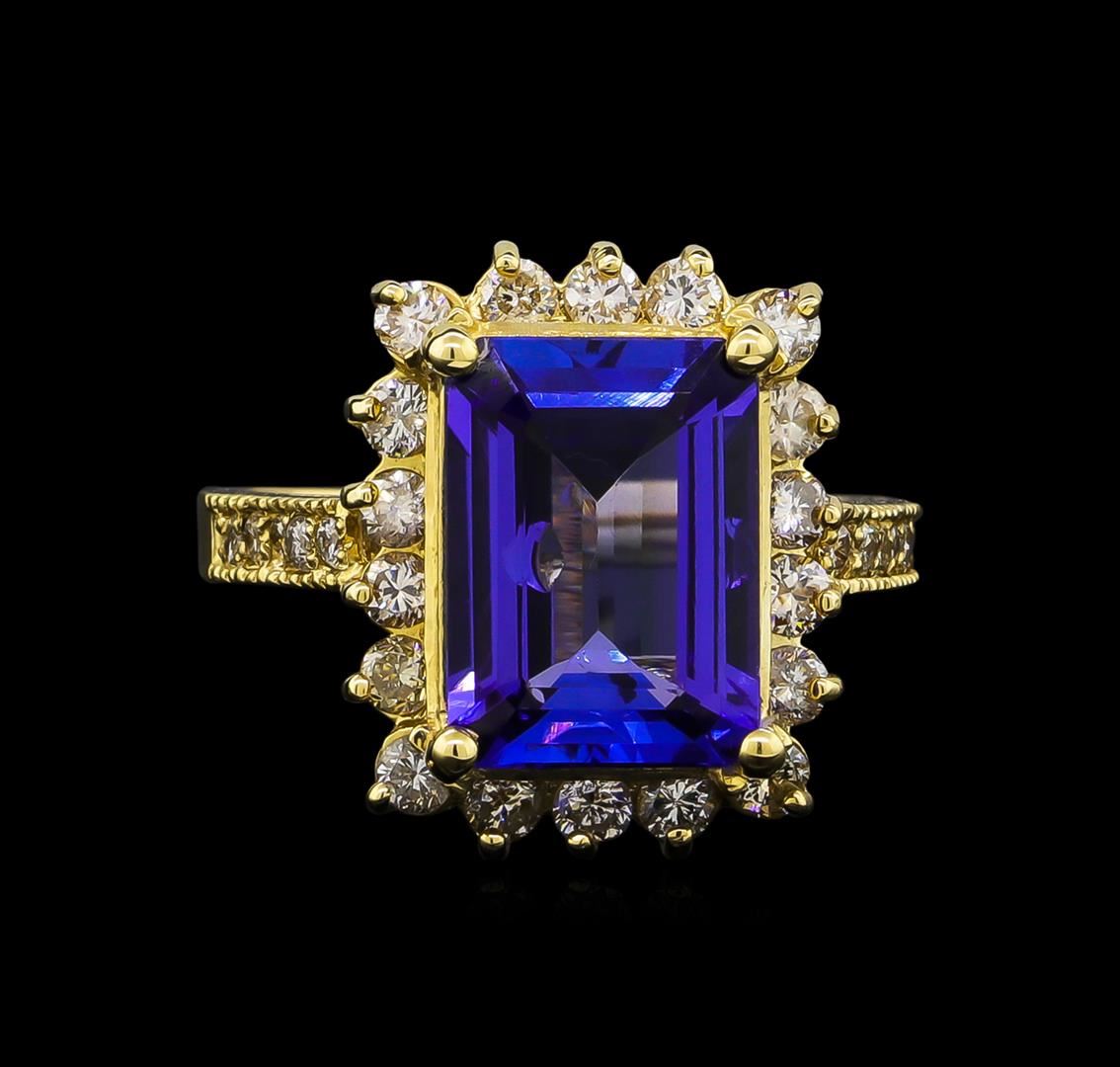 14KT Yellow Gold 5.32 ctw Tanzanite and Diamond Ring