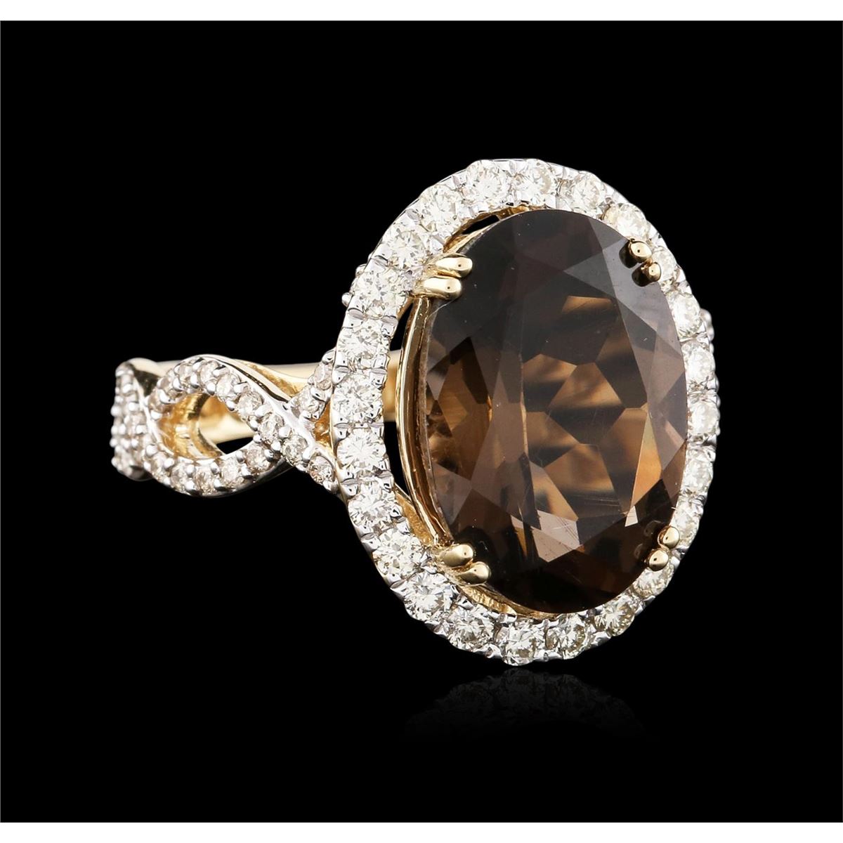 One ring featuring: 14KT yellow gold weighing 5.70 grams containing one smokey topaz center stone with a total weight of 5.40ct and diamonds with a total weight of 1.10ct.