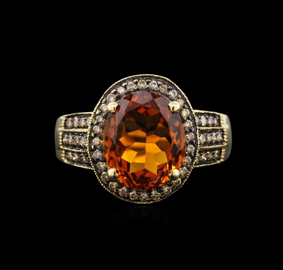 One ring featuring: 14KT yellow gold weighing 5.20 grams containing one citrine center stone with a total weight of 5.53ct and 68 brown diamonds with a total weight of 0.60ct.