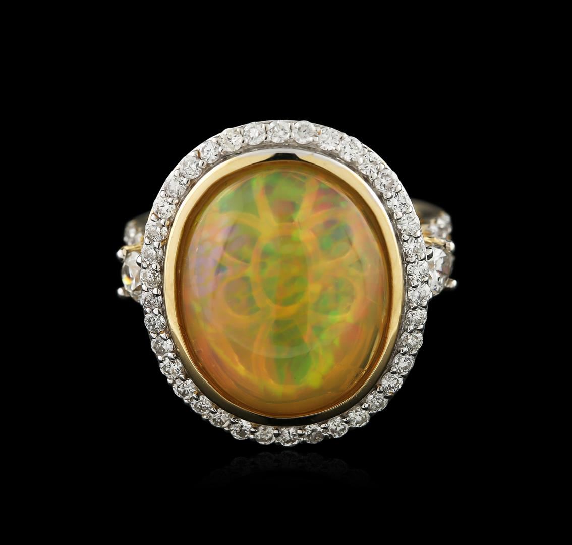 One ring featuring: 14KT yellow gold weighing 6.30 grams containing one opal center stone with a total weight of 5.61ct and round diamonds with a total weight of 1.04ct.
