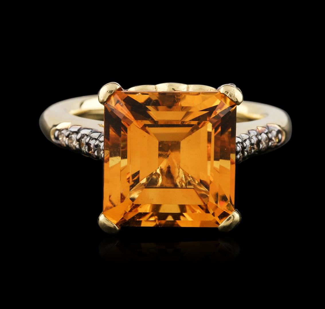 One ring featuring: 14KT yellow gold weighing 9.20 grams containing one citrine center stone with a total weight of 8.50ct and diamonds with a total weight of 0.50ct.