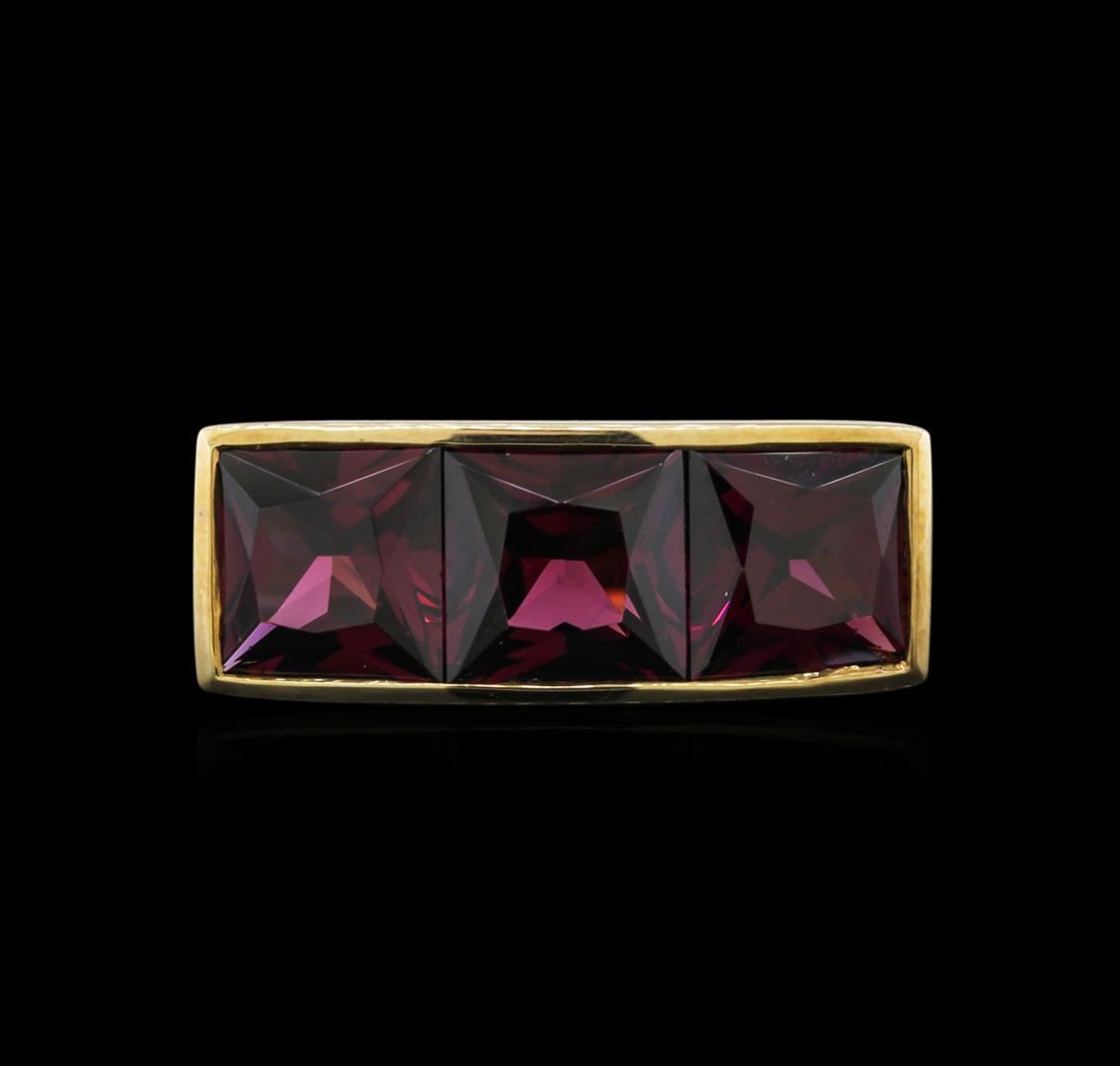 One ring featuring: 14KT yellow gold weighing 3.58 grams containing three red garnets with a total weight of 9.00ct.
