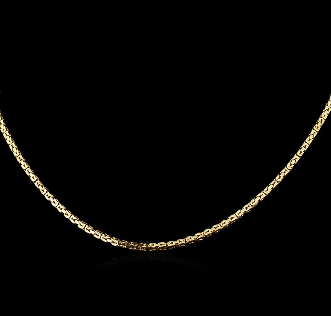 One electronically tested 14KT yellow gold man's combination cast & assembled fashion necklace with a spring ring clasp with a bright polish finish. The featured lady's necklace measures 24 inches in length. Identified with markings of "14K". Condition is new, good workmanship. Total Weight of Necklace 38.20gm. GAS Appraised at $4,115.00.
