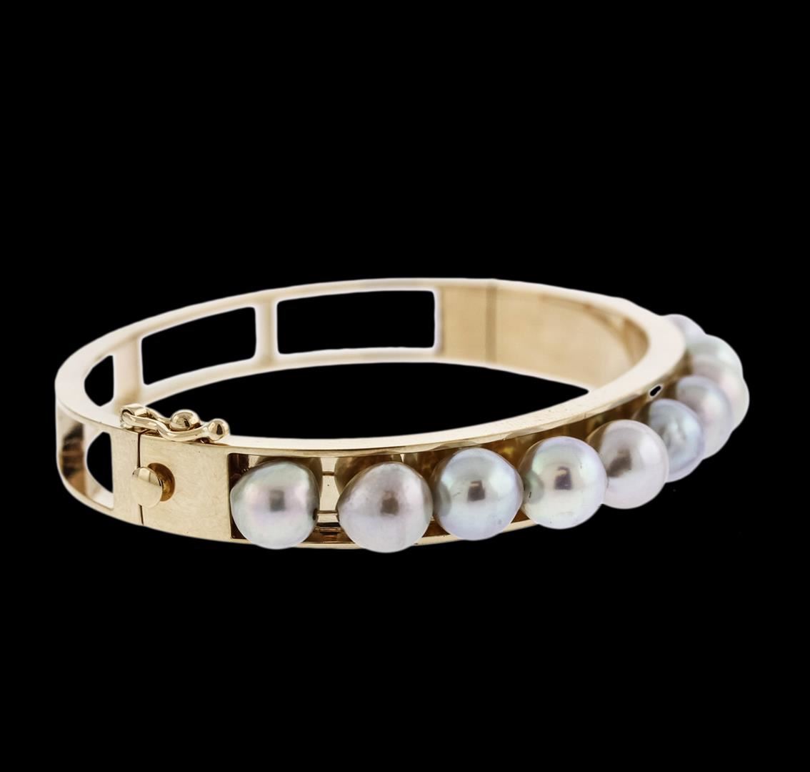 One bangle bracelet featuring: 14KT yellow gold weighing 22.50 grams containing pearls.