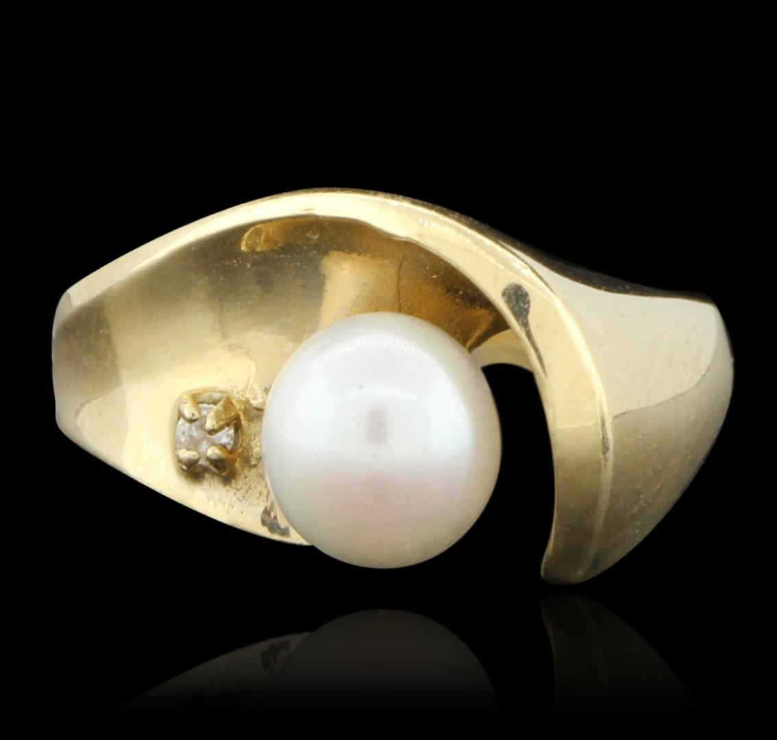 One ring featuring: 3.4grams of 14KT yellow gold and (1) Pearl and Diamond. Ring size 5.5.