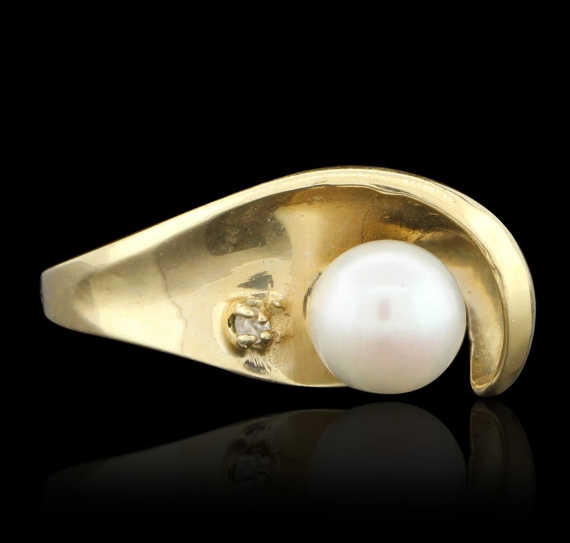 One ring featuring: 3.4grams of 14KT yellow gold and (1) Pearl and Diamond. Ring size 5.5.