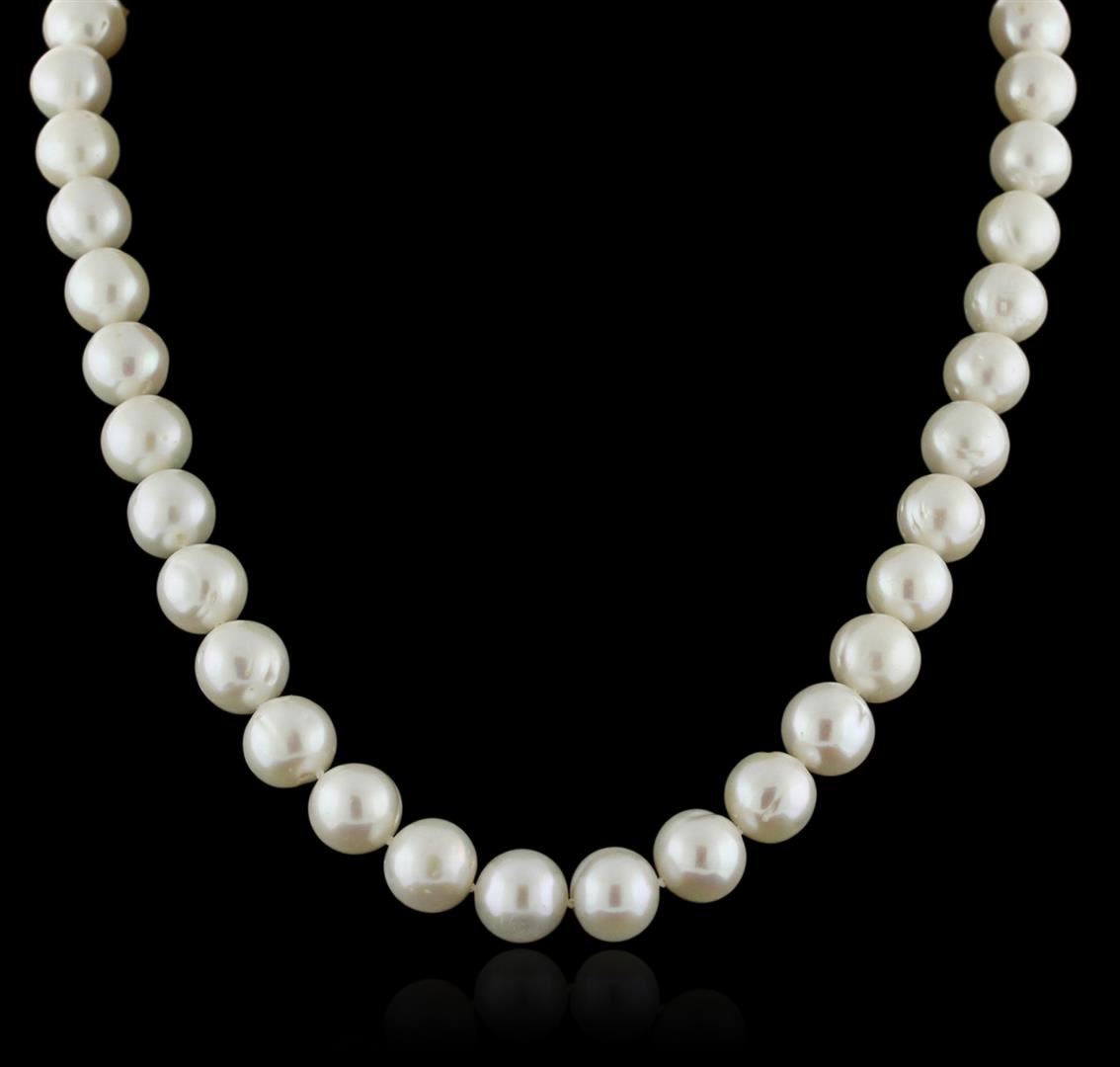 One necklace featuring: 14KT yellow gold weighing 66.10 grams containing 38 fresh water pearls measuring 11mm.