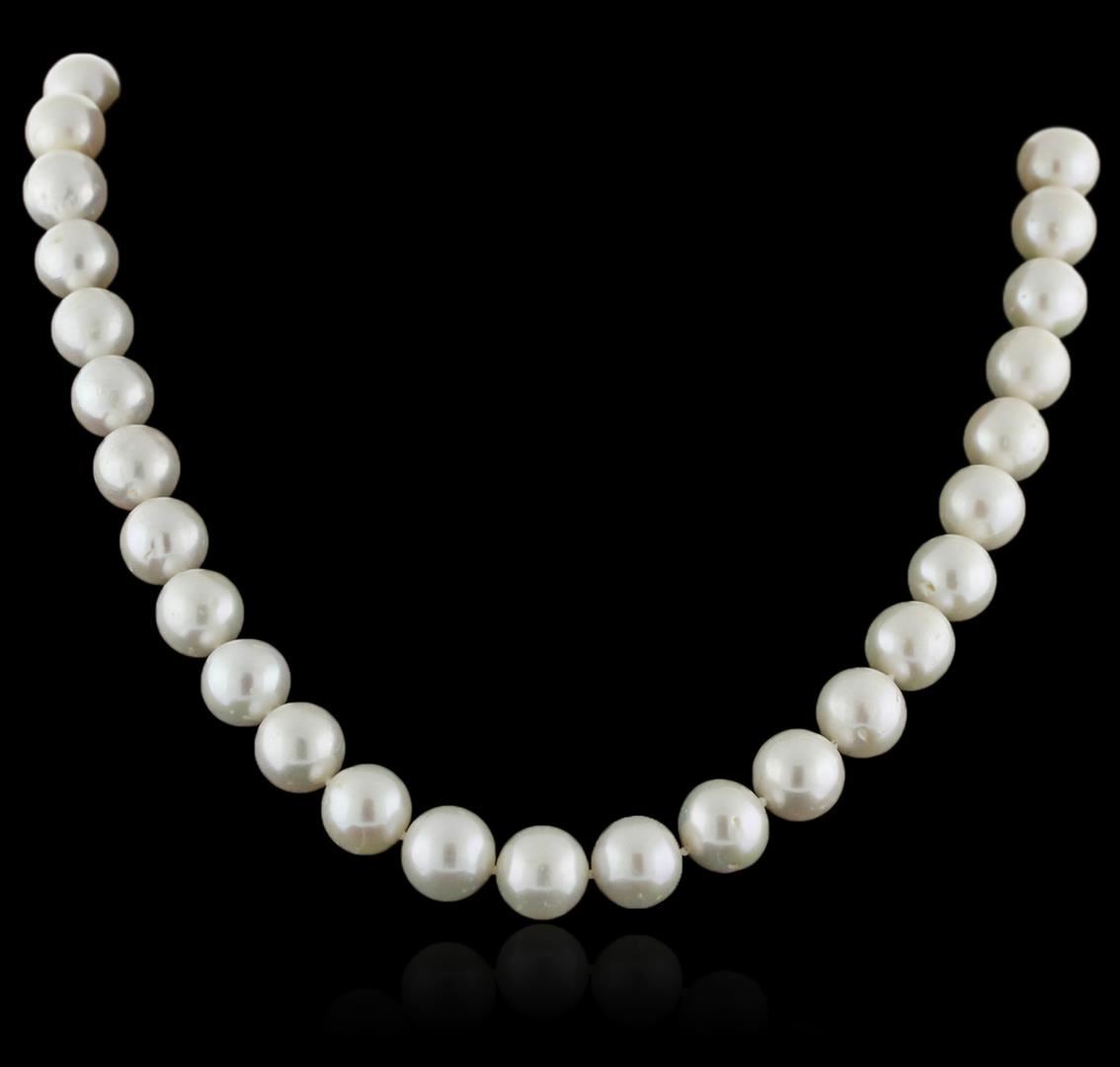 One necklace featuring: 14KT yellow gold weighing 67.16 grams containing 38 fresh water pearls measuring 11mm.
