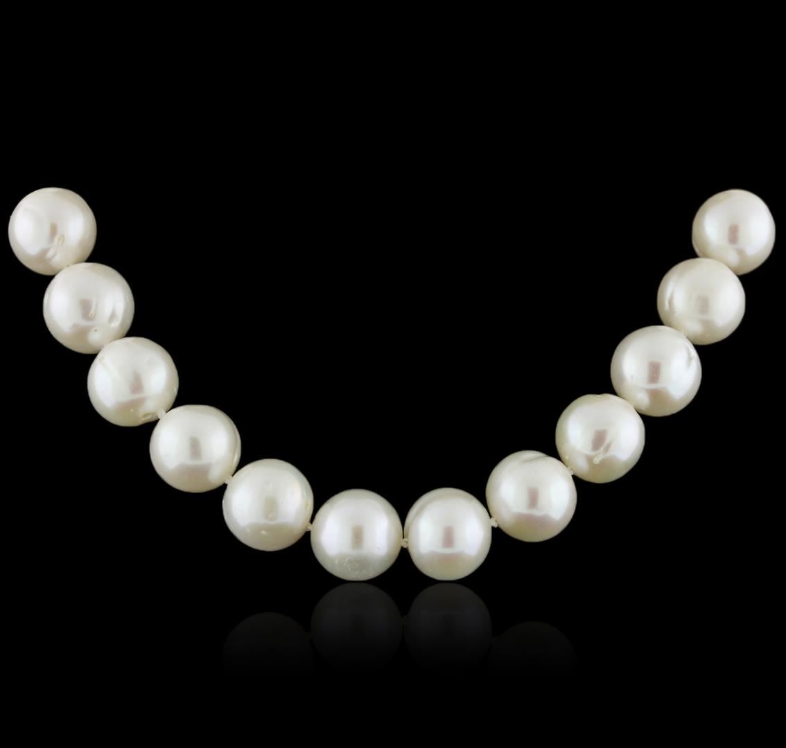 One necklace featuring: 14KT yellow gold weighing 66.10 grams containing 38 fresh water pearls measuring 11mm.
