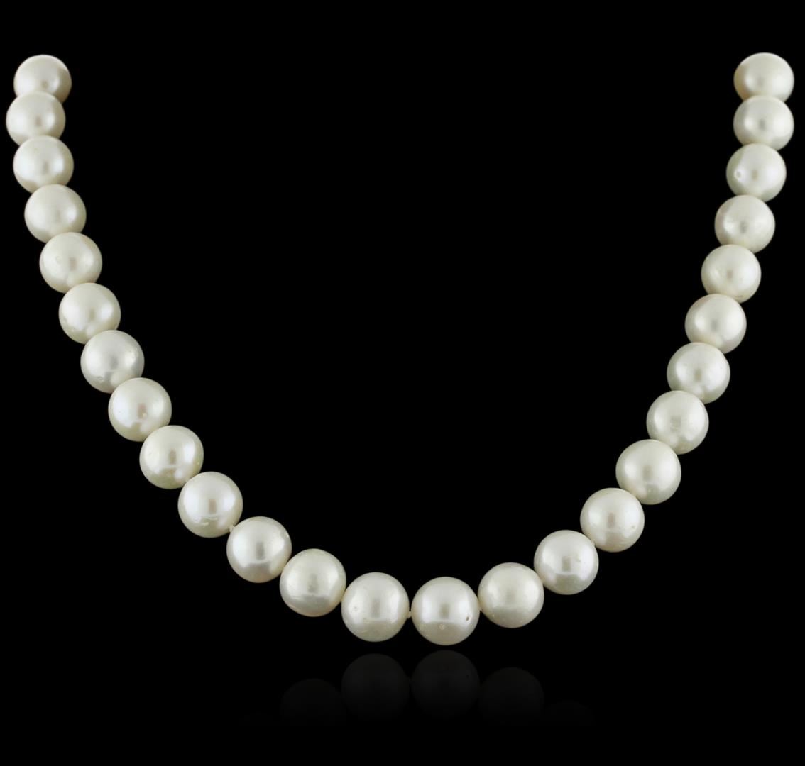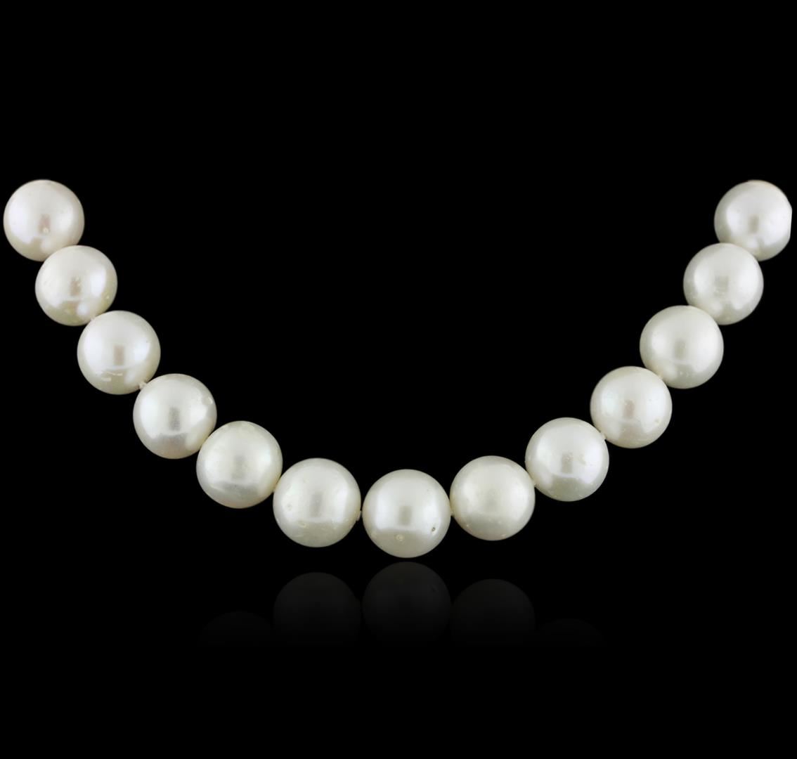 One necklace featuring: 14KT yellow gold weighing 67.25 grams containing 38 fresh water pearls measuring 11mm.