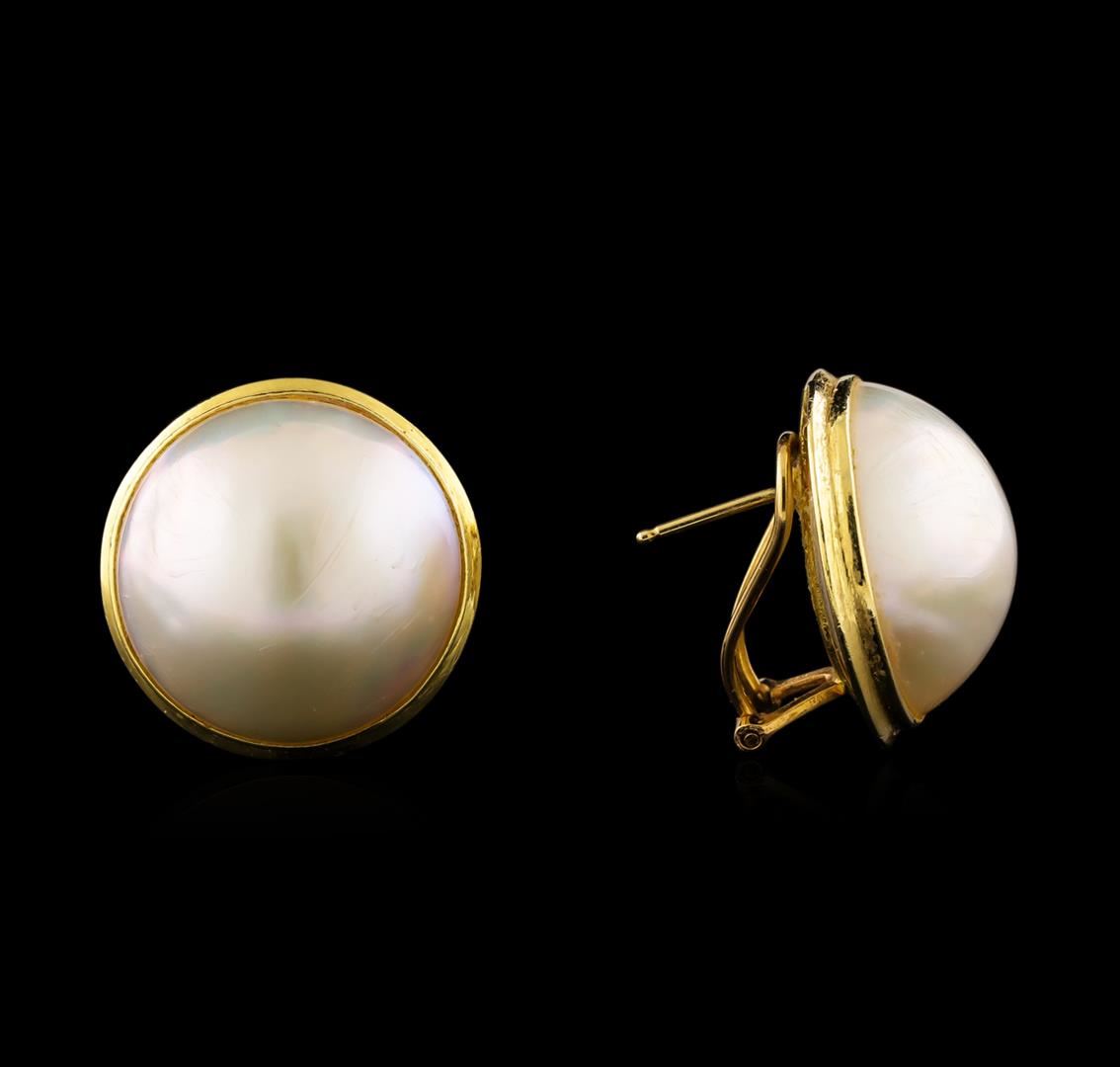 One set electronically tested 14KT yellow gold ladies cast pearl and diamond 4 piece suite with a bright polish finish. Identified with markings of "14K". Condition is new. Containing: Four mabe pearls, 16.4mm in size to 19.4mm in size. The pearls are white in color with a good luster, lightly blemished. Two Chinese freshwater pearls, 7.6mm in size to 5.5mm in size. The pearls are white in color with a good luster, baroque, moderately blemished. One prong set round brilliant cut diamond, measuring 2.00 - 2.00 x 1.20mm (depth est.) approximate weight of 0.03ct. Clarity: I-2. Color: K, Cut is Good. Colored gemstones are presumed to have been subjected to commonly used enhancement processes. All diamonds and colored gemstones are graded in the mounting, unless otherwise stated. Total Weight of Diamonds 0.03ct. Total Weight of 4 Piece Suite 33.30 grams. GGL Appraised at $3,535.00.