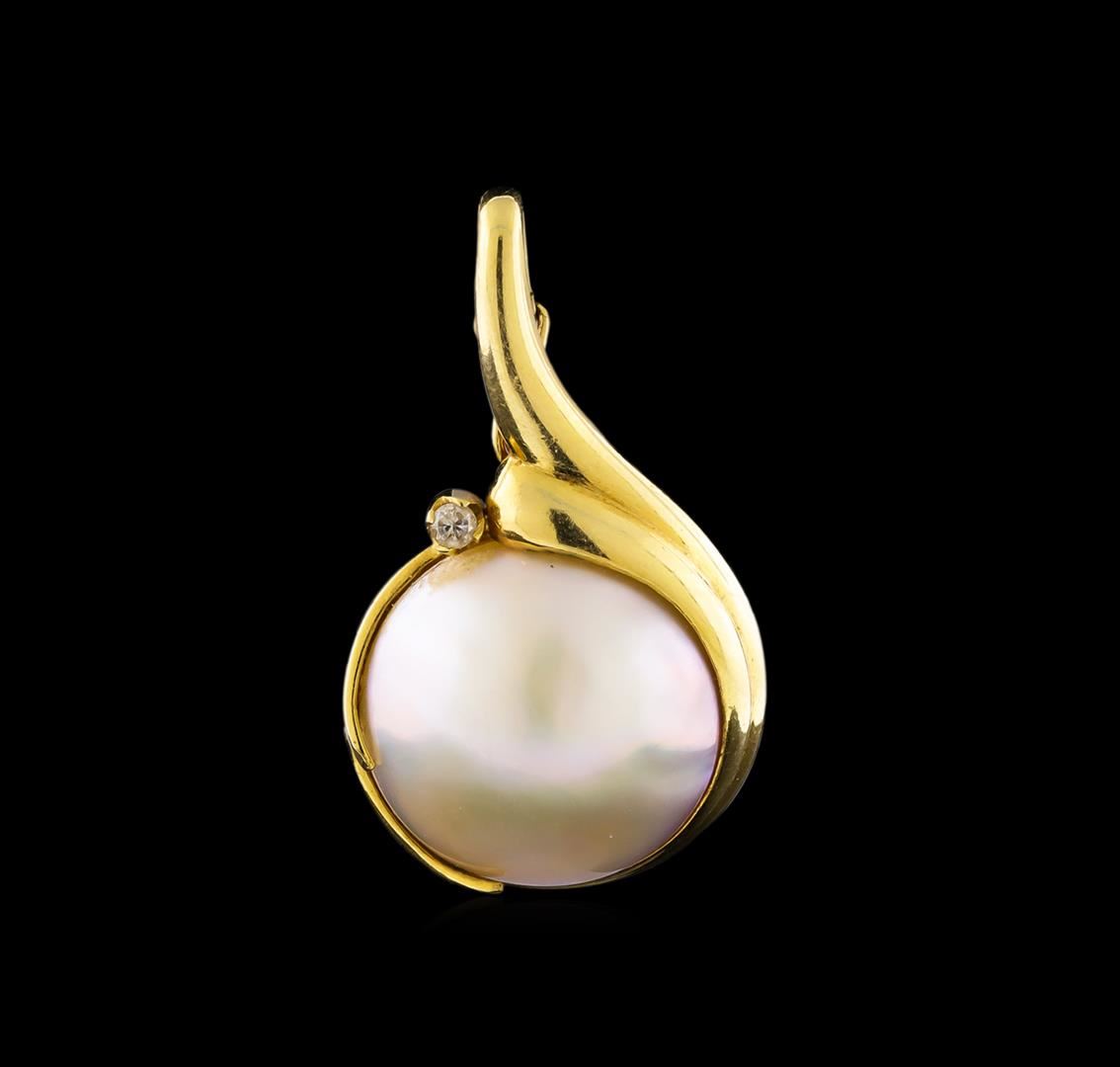 One set electronically tested 14KT yellow gold ladies cast pearl and diamond 4 piece suite with a bright polish finish. Identified with markings of "14K". Condition is new. Containing: Four mabe pearls, 16.4mm in size to 19.4mm in size. The pearls are white in color with a good luster, lightly blemished. Two Chinese freshwater pearls, 7.6mm in size to 5.5mm in size. The pearls are white in color with a good luster, baroque, moderately blemished. One prong set round brilliant cut diamond, measuring 2.00 - 2.00 x 1.20mm (depth est.) approximate weight of 0.03ct. Clarity: I-2. Color: K, Cut is Good. Colored gemstones are presumed to have been subjected to commonly used enhancement processes. All diamonds and colored gemstones are graded in the mounting, unless otherwise stated. Total Weight of Diamonds 0.03ct. Total Weight of 4 Piece Suite 33.30 grams. GGL Appraised at $3,535.00.