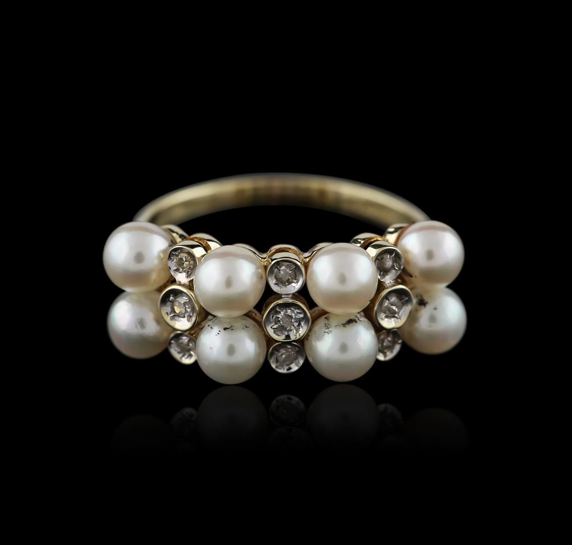 One ring featuring: 14KT yellow gold weighing 3.50 grams containing pearls and diamonds with a total diamond weight of 0.10ct.